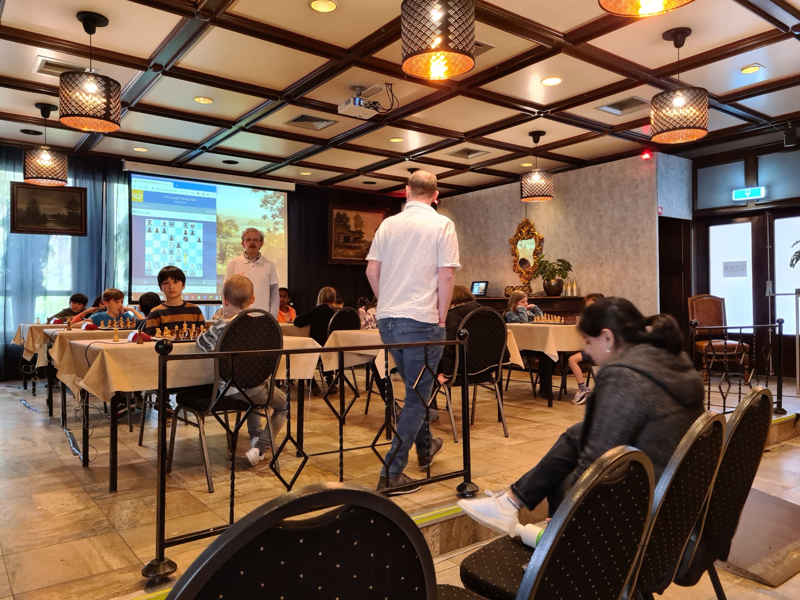 In het Hemelvaartweekend heeft Sarah meegedaan aan het NK D in Waalwijk. Voor Sarah het derde NK na haar twee eerdere deelnames in Waalwijk. Voor Rijswijk het eerste NK in drie jaar, want de afgelopen jaren was het door Corona niet doorgegaan. Het was voor iedereen wennen, maar de organisatie was daardoor misschien net iets meer bevlogen dan in 2019, toen Elisa meedeed. Je merkte het in de kleine dingen: men heeft het er gemist en was naar mijn gevoel enthousiaster om de jeugdschakers weer te zien. Ook geweldig om zo’n jonge toernooidirecteur te zien!