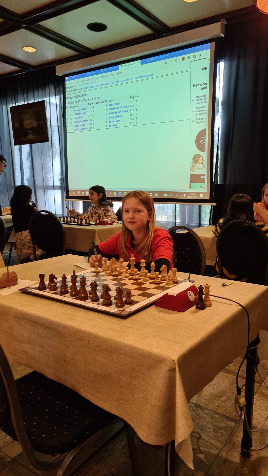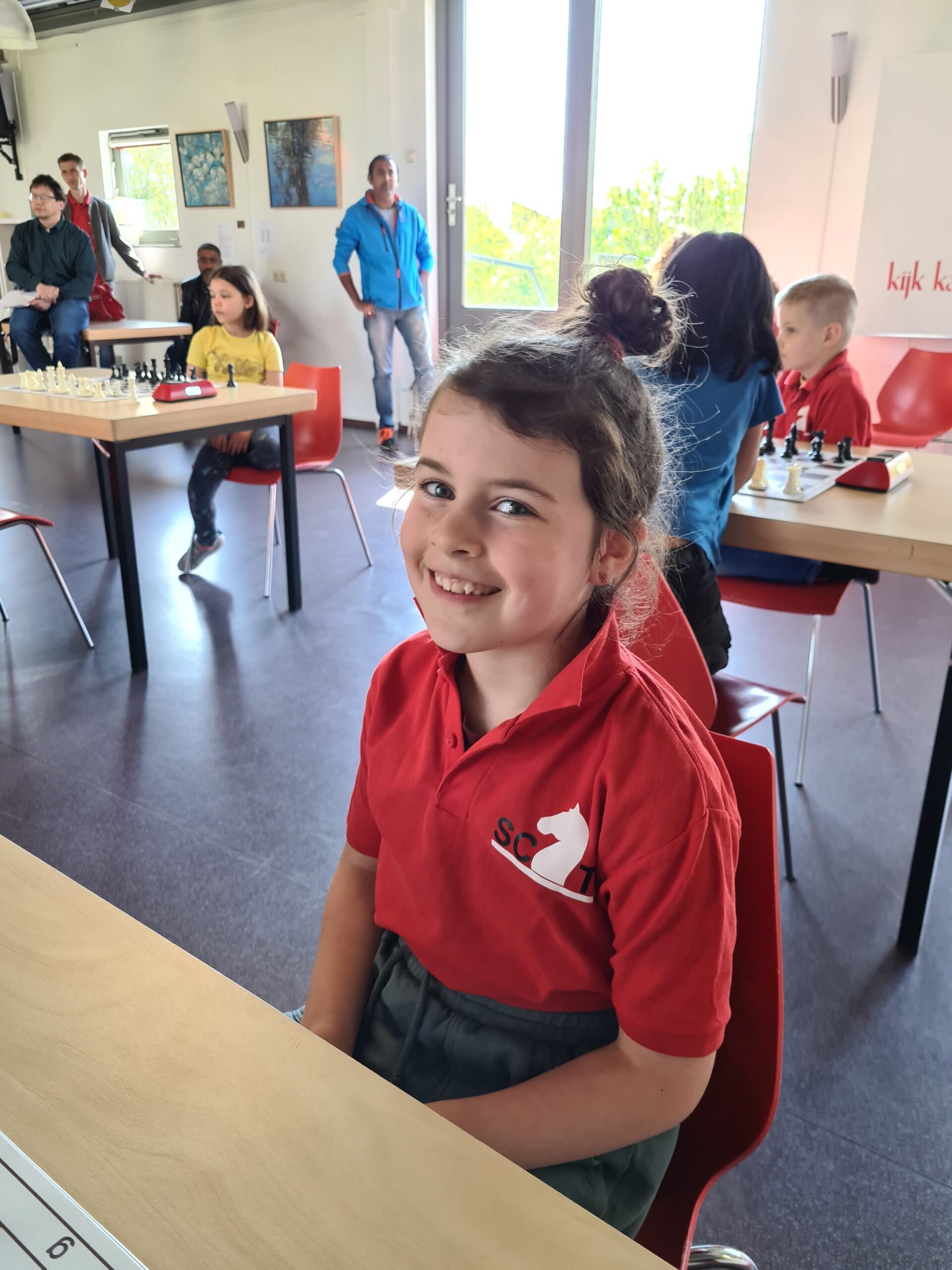 Voor Sarah waren het drie geweldige dagen. Op woensdag al naar Rijnsburg, op donderdag tot en met zaterdag drie ronden schaken. Vooral de sfeer onder de meiden was goed. Er werd veel samen gespeeld en iedereen die mee wilde doen, was welkom. Niemand werd uitgesloten. Alleen die sfeer al maakte het toernooi buitengewoon geslaagd.