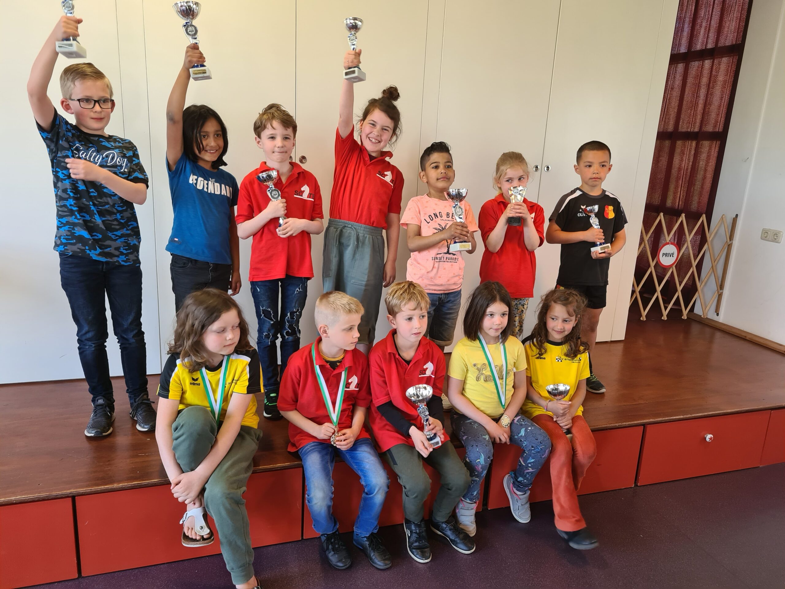Vandaag was voor het eerst sinds 2019 weer een basisschool schaakkampioenschap. De afgelopen 2 jaar ging het toernooi vanwege Corona niet door. Vandaag waren er maar liefst 16 teams van 13 scholen uitgenodigd om meteen de finale van Groningen en Drenthe te schaken. Helaas bleken drie scholen zonder opgave van reden afwezig te zijn en moest één school zich na twee ronden terugtrekken vanwege ziekte. Hierdoor bleven uiteindelijk 12 teams over om te strijden om drie NK-plekken.