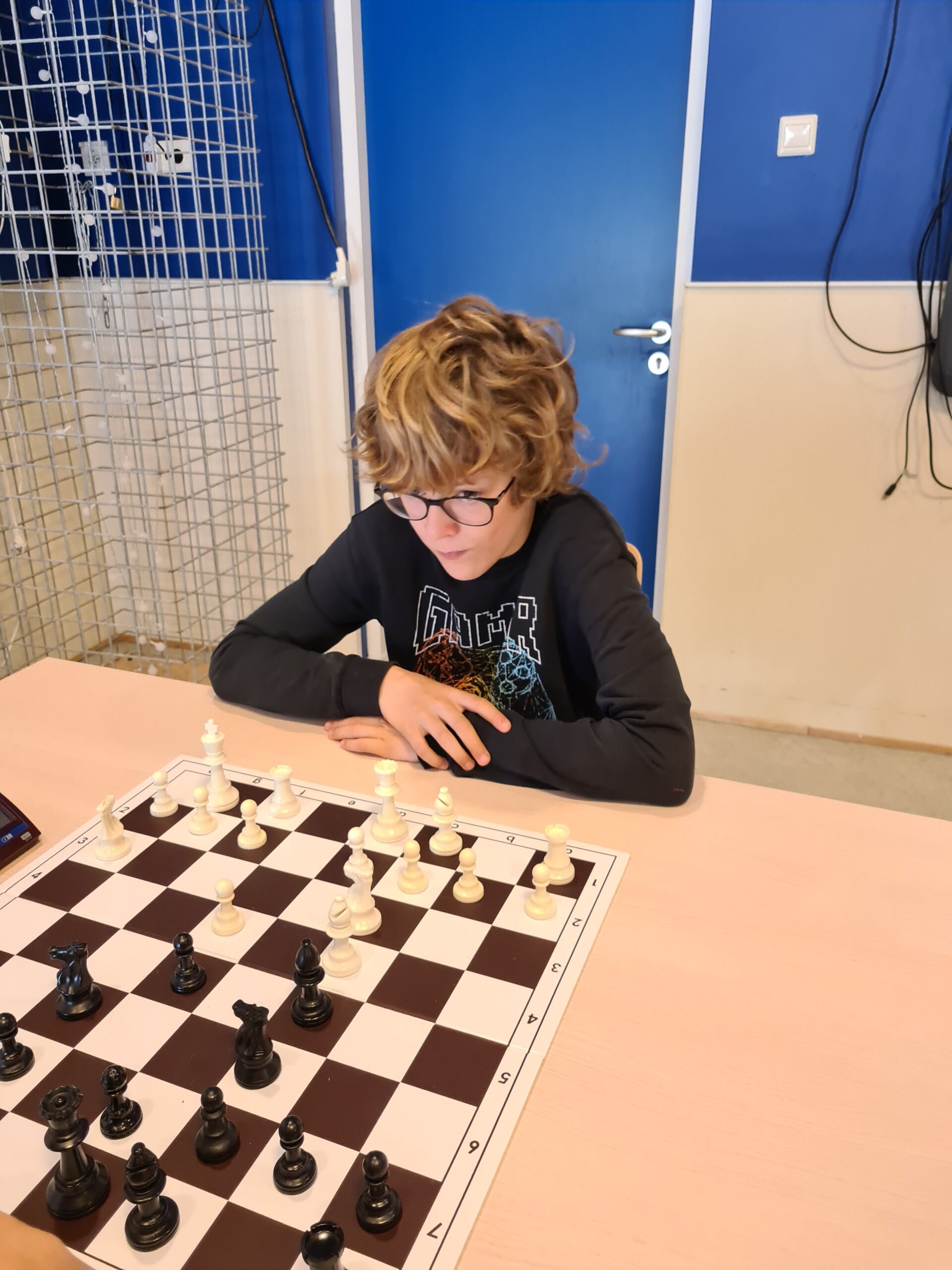 En dat deed hij verdienstelijk. Tegen Viaan natuurlijk geen kans, maar hij hield het wel het langste vol. Tegen Hugo stond hij één keer gewonnen en miste een mat.