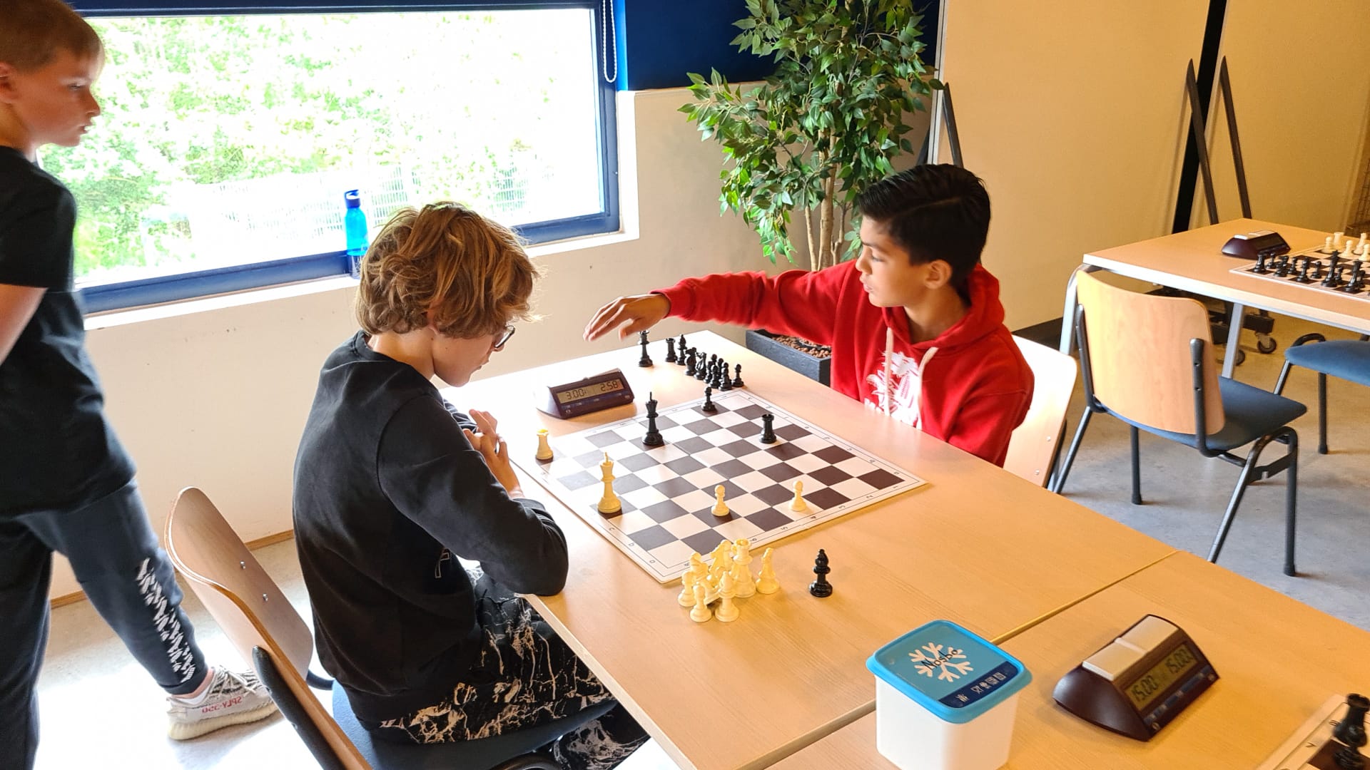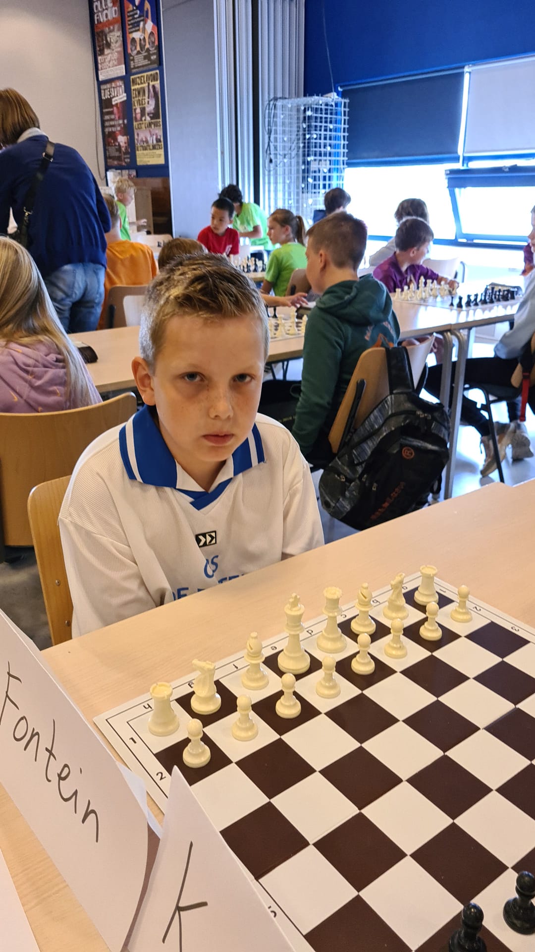 De Fontein heeft dit jaar een heel goed uitgebalanceerd team. Vijf clubschakers waarvan vooral de meiden op bord 3 en 4 in topvorm zijn. Dan word je als team bijna nooit verslagen. De borden 1 en 2 moeten keepen en als we daar een half punt scoren winnen we de wedstrijd. Zo verliep het eigenlijk ook de hele middag. Het team ving elkaar goed op als het misging, Freddie, Angela en Björn waren er voor de mental en physical coaching tussen de ronden. Reserve Gijs speelde vier keer en zorgde tussen de ronden voor rust door zijn rustige tekenen.