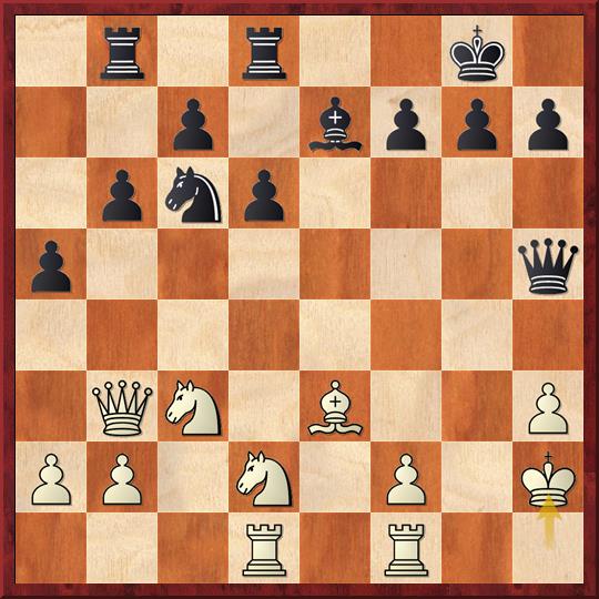 Na een goede opening tegen Atusha heeft Sarah een paard geruild tegen 3 pionnen. In deze stelling staat de witte koning niet goed. Sarah speelt dan ook de stukken naar de koning met 1… Pe5 2. f3 Lh4?! 3. f4! Beter is op beide zetten om de toren op d8 erbij te halen met de zet 1… d5 en 2… d5. In dat geval zou de witte koning met de toren van d8 via d6 en g6 (en de dreiging d5-d4) voor een ongekend sterke aanval zorgen.