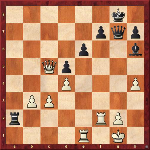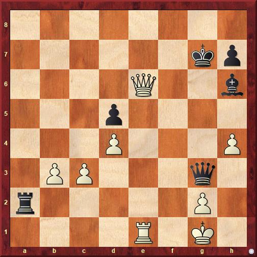In deze stelling had Elisa nog 8 seconden. Ze kon naar mijn menig toeslaan met 1… Dg3. Er komen opeens allemaal gemene trucjes in de stelling: