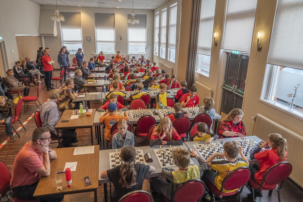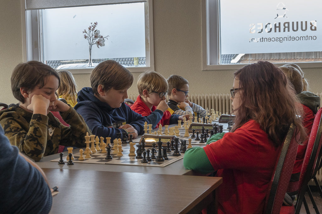 We hebben als schaakclub de afgelopen jaren prachtige toernooien beleefd. Het toernooi van gisteren hoort in dat rijtje. We konden 93 jeugdschakers verwelkomen in het Buurhoes. Daarnaast hadden we voor onze 4 t/m 7 jarigen een eigen toernooitje, waarbij ze samen met Erwin Kok en Paula een aantal schaakspellen deden. Zo konden ze voor het eerst meemaken wat een schaaktoernooi is.