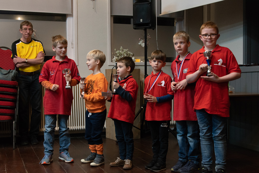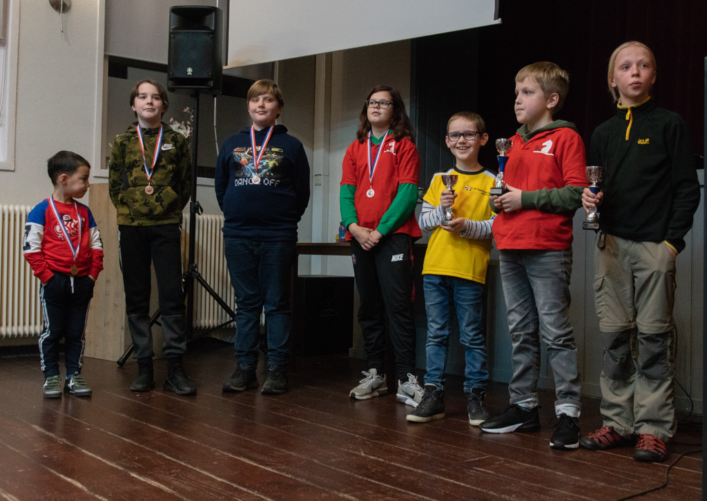 Aan de andere kant: schaken gaat wel vaak om winst en verlies. Dus aan het eind van de dag zijn er drie bij elke groep die met een prijs naar huis mogen gaan. Toch willen we iedereen blijven aanmoedigen om naar toernooien te gaan. Want het gaat niet alleen om het resultaat, het gaat ook om het plezier, het ontmoeten van gelijkgestemden en om het gevoel dat je er meer van begrijpt. Om dat te benadrukken ging iedereen aan het eind van de dag met een medaille naar huis. Beschikbaar gesteld door onze sponsoren: Plainwater, Swap Support, Vereniging Dorpsbelangen Ten Boer, Slagerij ’t Koopmanshoekje en Bob Tweewielershop.