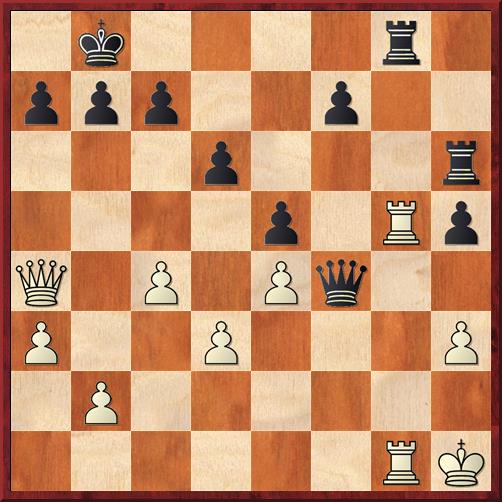 viel Joël niet in de grap om 1… Txg5 te spelen, want dan kan wit matzetten. In plaats daarvan speelde hij 1… Df3+ waarna wit zichzelf in het zwaard stortte met 2. T1g2 Dxh3+ 3. Dh2? Df1+ en mat op de volgende zet.