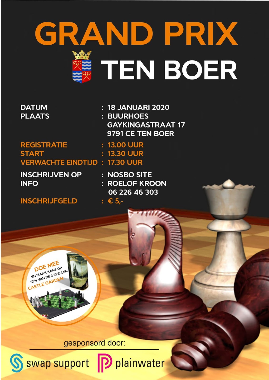 Dit jaar liep het toernooi op rolletjes. Dit kwam door de geweldige voorbereiding. Veel mensen hielpen hier aan mee: Ronald maakte een prachtige flyer, Jan reserveerde het schaakmateriaal, Anja regelde kadootjes voor de verloting, Paula zorgde voor de drie hoofdprijzen, Helma wist samen met Gabor de sponsoren te bereiken, Dirkjan nodigde Bob uit voor de uitreiking van de wisselbeker, Björn, Thea en Jan Willem leidden een groep, Angela zorgde ervoor dat iedereen een clubshirt aan kon hebben, Dino regelde de contacten met het Buurhoes en de Evangelische Gemeente Ten Boer en Roelof mocht afgelopen donderdag op Radio Noord iets vertellen over het toernooi. En dan ben ik ongetwijfeld mensen vergeten zoals alle ouders die ervoor zorgden dat we iets na 6 uur ’s avonds het Buurhoes in oude staat aangeveegd en schoongemaakt achter konden laten. Na zo’n dag besef je eens te meer dat het jeugdschaken en het plezier van de jeugd veel positieve energie naar boven haalt in en rondom het dorp Ten Boer. Het verbindt jeugd en ouders.