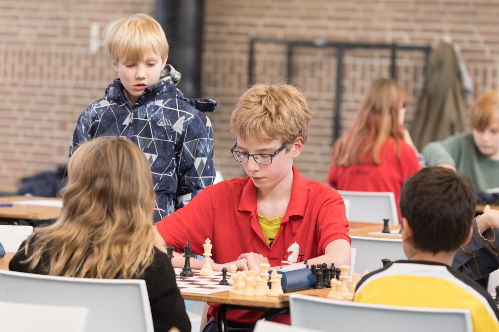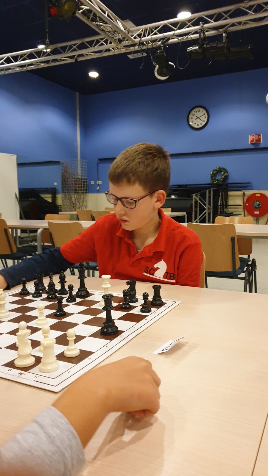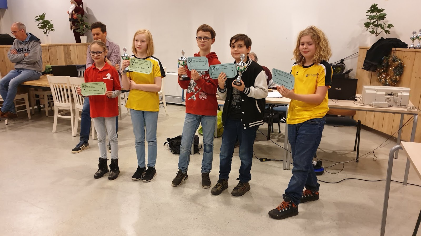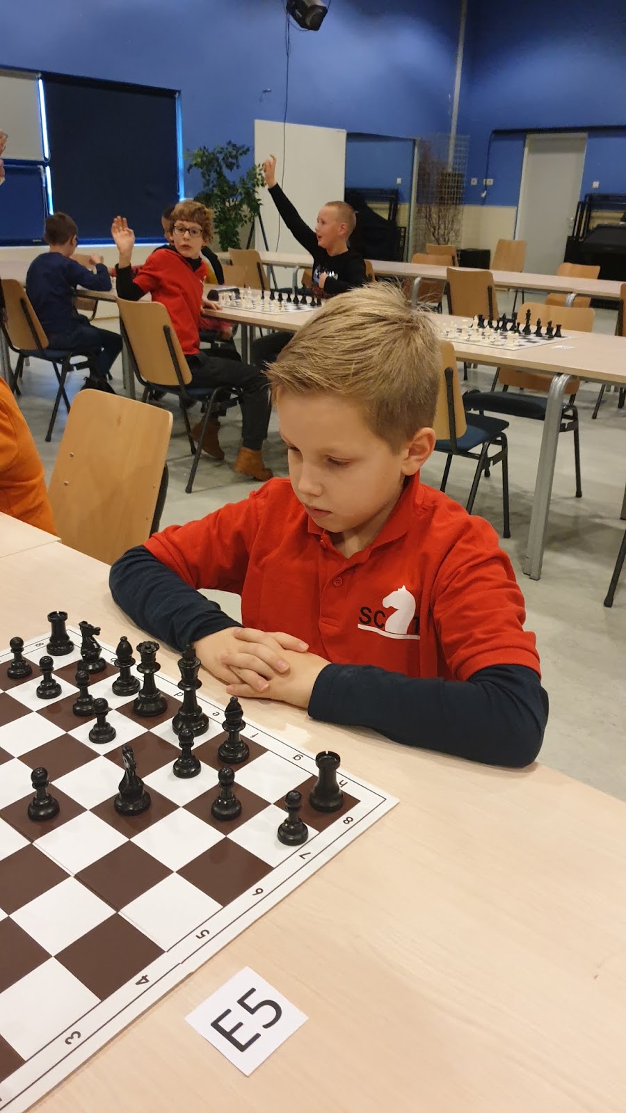 Het werd een leerzame middag voor onze 12 schakers. Door omstandigheden was de organisatie niet optimaal. De hoofdorganisator had wegens ziekte ’s ochtends af moeten zeggen, dus dat betekende dat Jan en Bastian van Os opeens voor een enorme taak opgesteld stonden. Gelukkig waren er enkele schakers zoals Erwin van Pelt en Marijn Swemmer die spontaan meehielpen. En ook leuk was dat Jan een schaakprobleem voor de kinderen had neergelegd. Vijf kinderen konden zo een trainingsclinic met Nederlands Kampioen Jonas Hilwerda winnen. Gijs was één van de vijf gelukkigen.