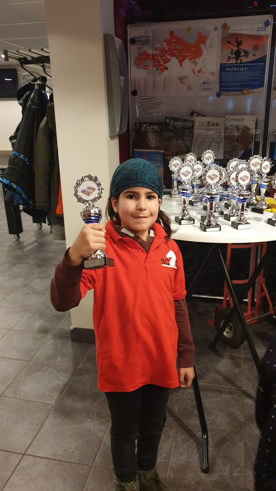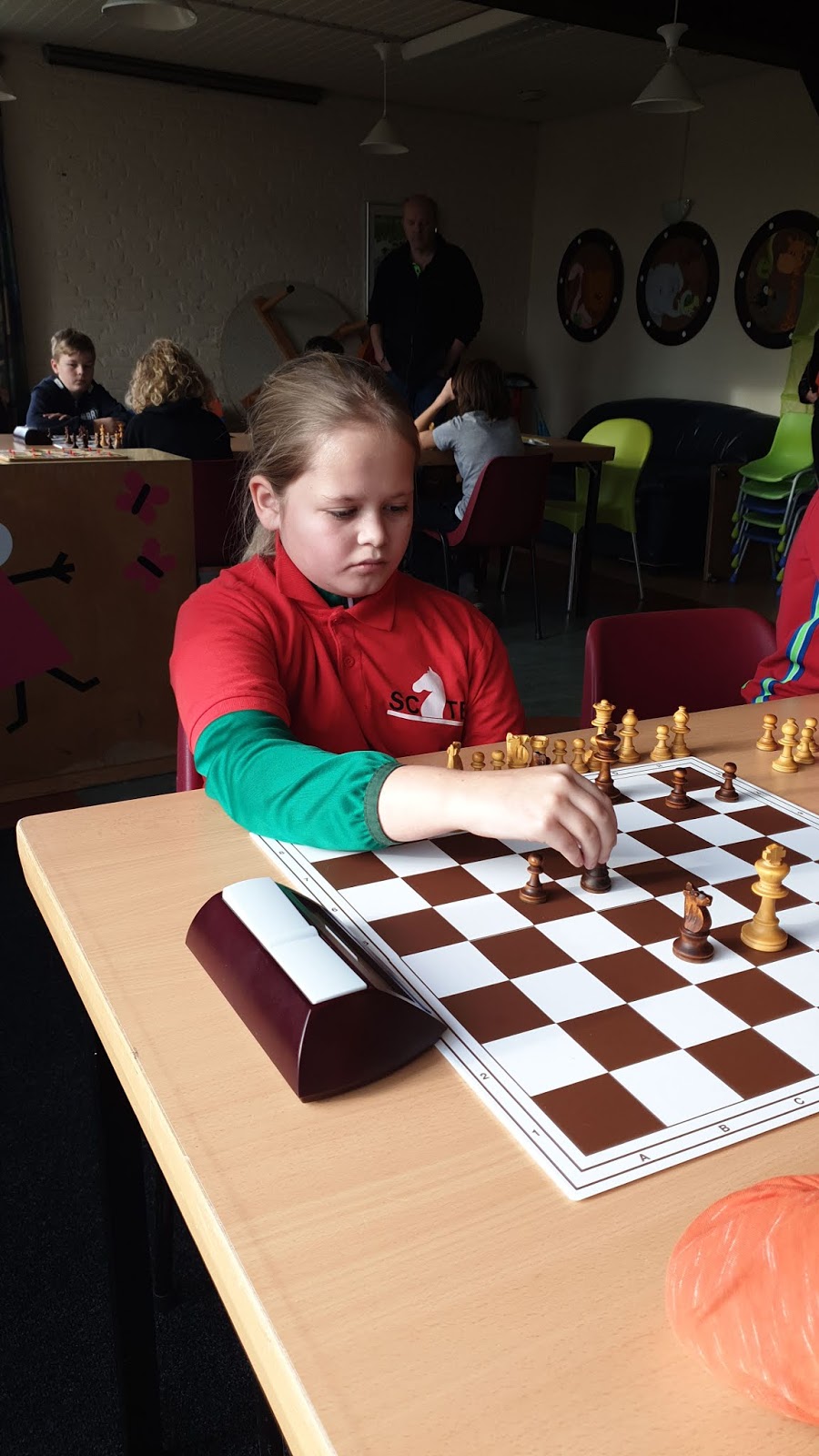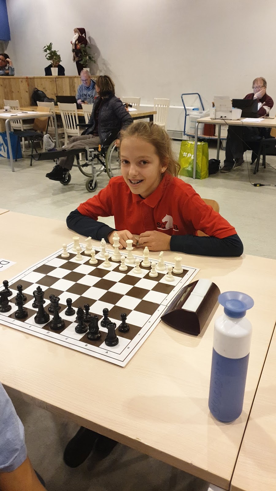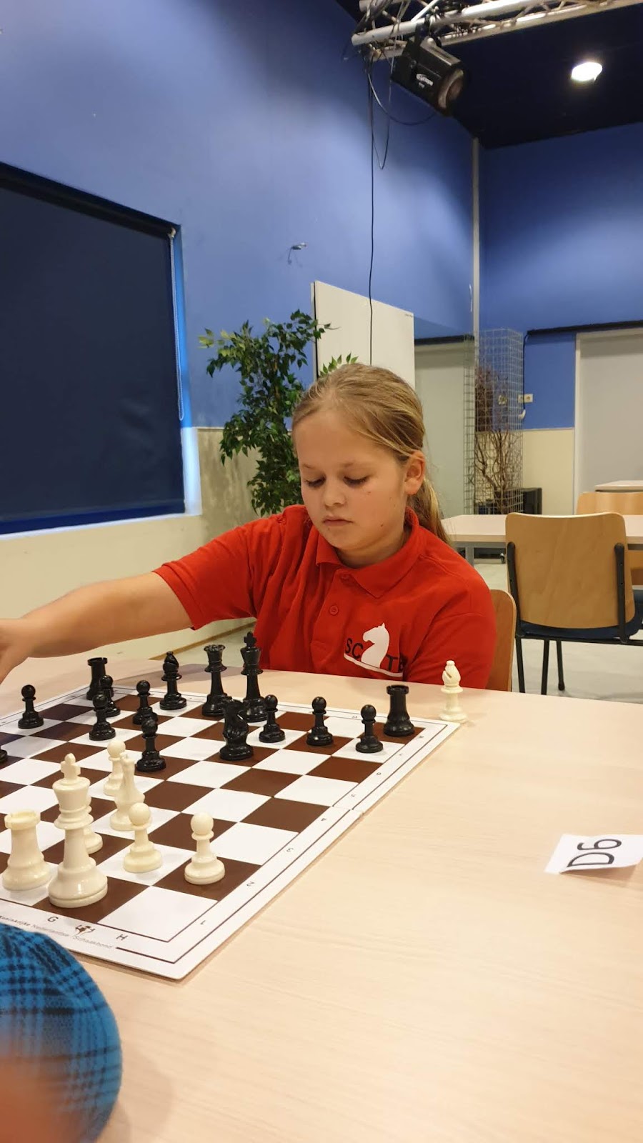 Vandaag verraste Sarah op de tweede dag van het Persoonlijke Jeugdkampioenschap van de Nosbo iedereen door met 4 uit 7 meisjeskampioen te worden. Hiermee heeft ze het recht verworven om mee te doen aan het NK in Waalwijk.