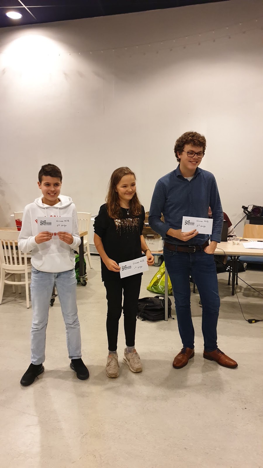 Zo eindigden Tyron, Samuel en Sarah op 4 uit 7. Samuel werd op weerstandpunten vierde. Hij had alle toppers gehad, een paar goede partijen gespeeld, maar het was niet genoeg voor de titel. Wel een enorme groei laten zien en daar zijn we heel erg tevreden over.