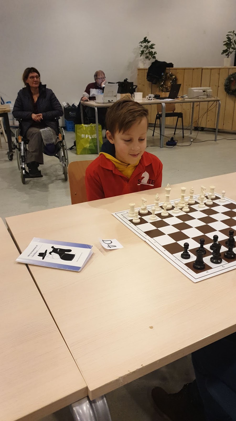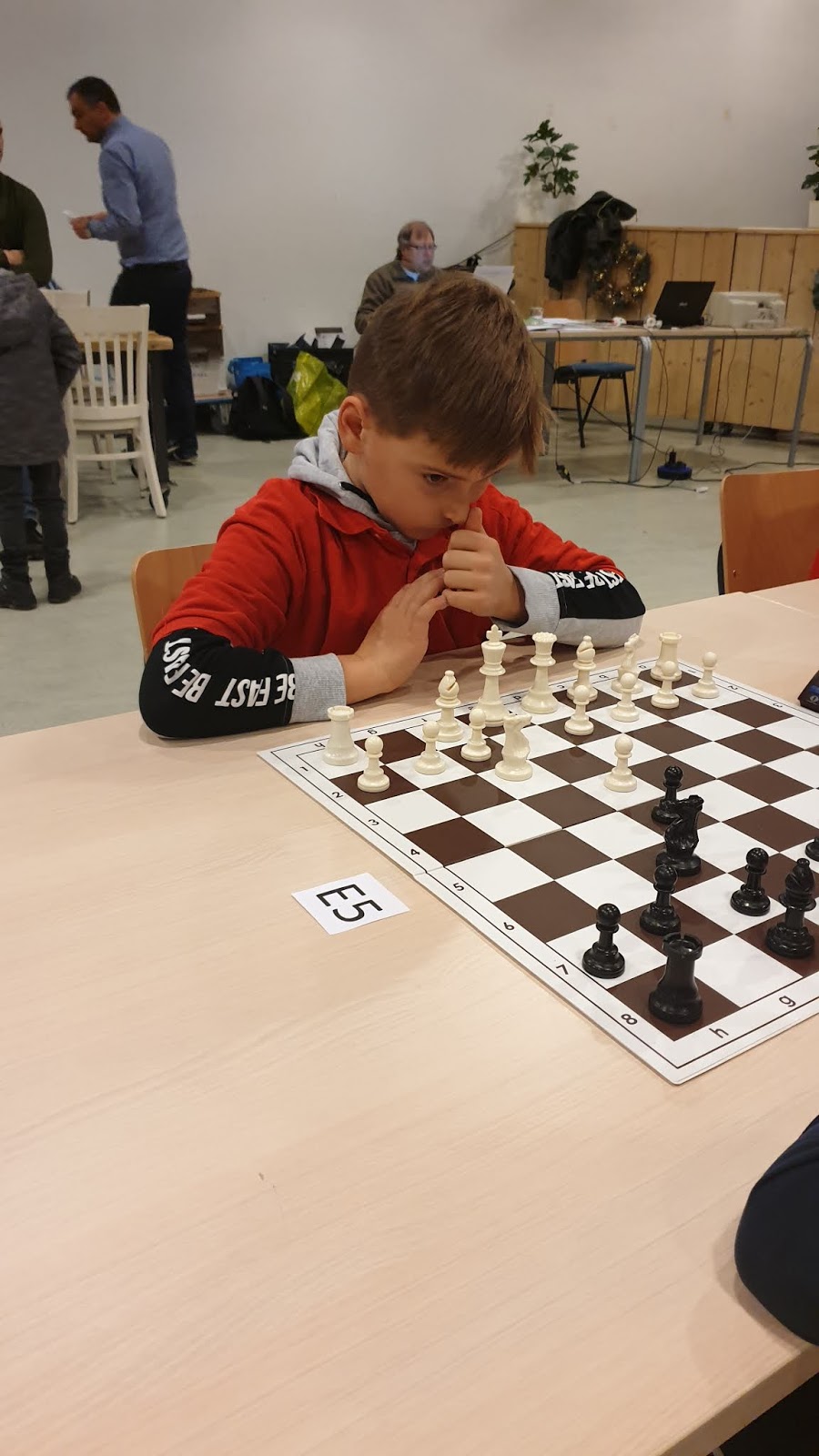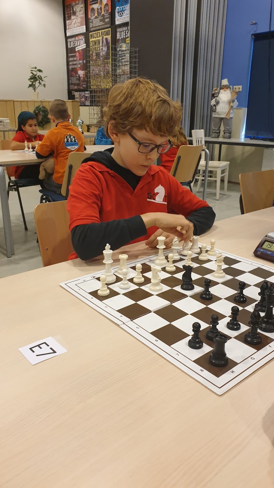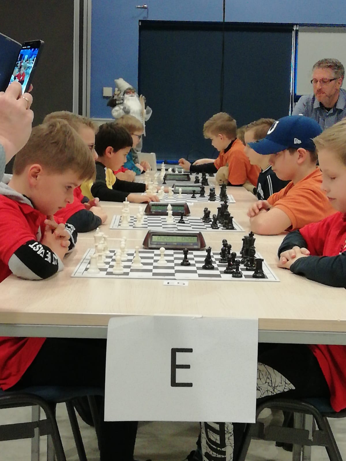 In de E-groep speelden Niek en Tyron. Leek me wel een groep waar wat te winnen was, maar blijkbaar ook hier een paar sterke spelers, zoals Jaap de Vries. Tyron haalde 3 punt, Niek, 3,5.