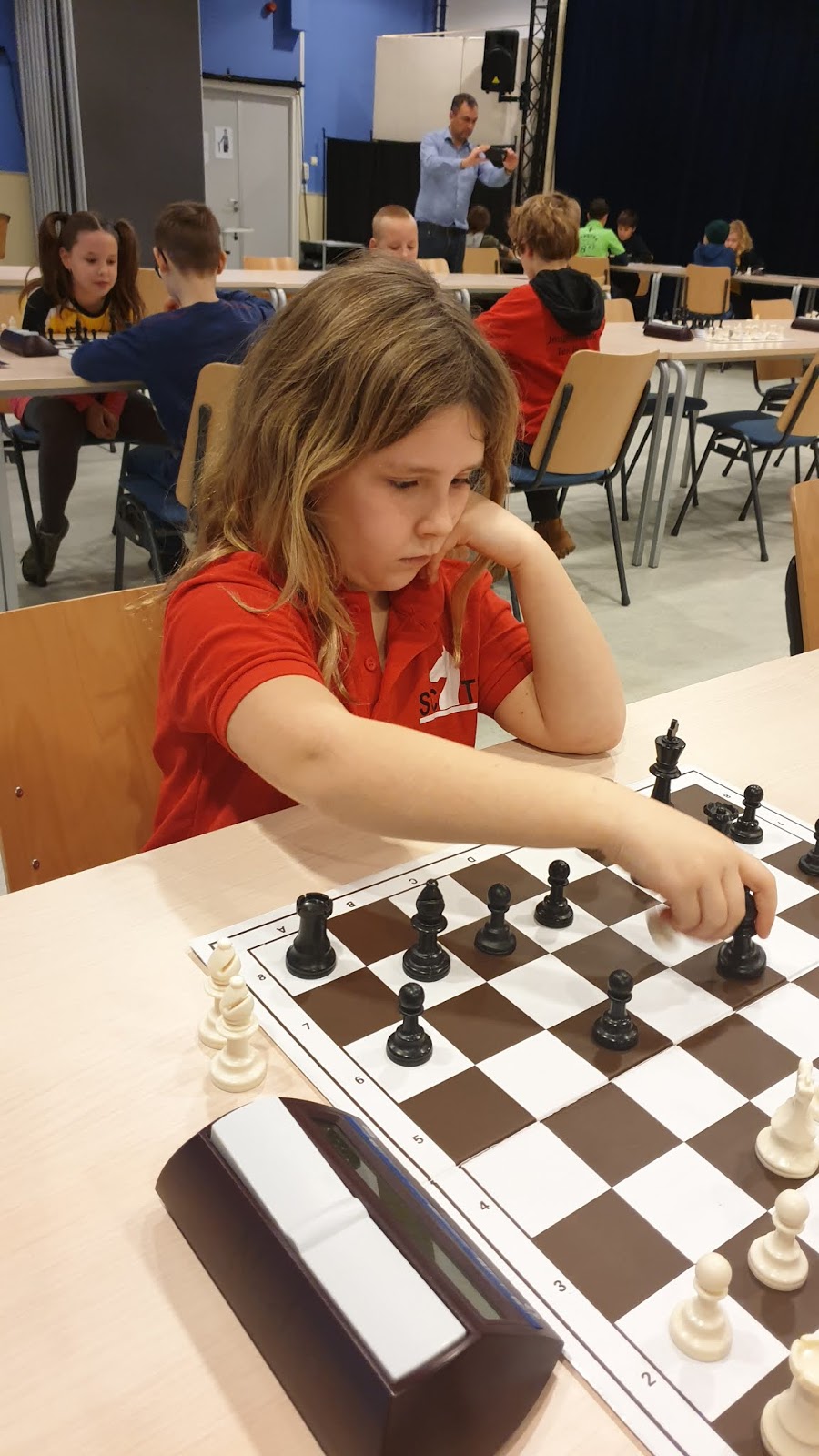 Isidora won de D-groep onberispelijk. Ze speelde geconcentreerd en won al haar partijen door goed spel. Gewoon sterker dan de rest. Toen za al eerste was verloor ze onverwacht in de laatste ronde. Daniël had een goed middenstuk toen hij 2,5 uit 3 scoorde. Daniël houdt van het spelletje en doet graag mee aan toernooien. De groei is duidelijk merkbaar. Gijs had het gisteren zwaarder. Hij stond vrij hoog in het klassement maar moet met 2 uit 7 enige extra achterstand incasseren. Aan de andere kant: ik zie nog steeds veel groei en het schaken wordt steeds beter. En daar gaat het om!