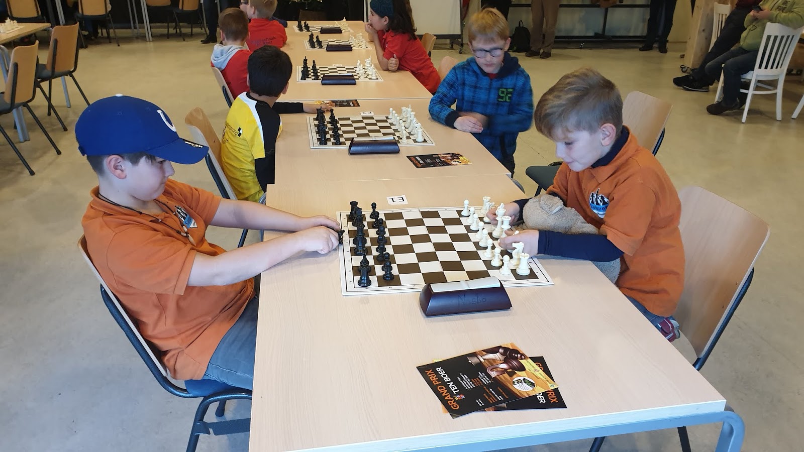 De Grand Prix in Dokkum staat in de regio bekend als een gezellige bijeenkomst aan de rand van het stadje, waarbij het niet altijd even rustig in de speelzaal is. Ook dit jaar ontstond er weer een mix van gemoedelijkheid en hartelijkheid van de organisatoren en de niet helemaal optimale speelomstandigheden. Voor de jeugd ook goed om te leren hoe hiermee om te gaan. En laten we wel wezen: de groepsleiders wisten samen met Bernard Keizer alles in goede banen te leiden. Een korte pauze na de vierde ronde met eten en drinken, een medaille voor de niet prijswinnaars. Kortom de Grand Prix wist zijn karakter vast te houden!