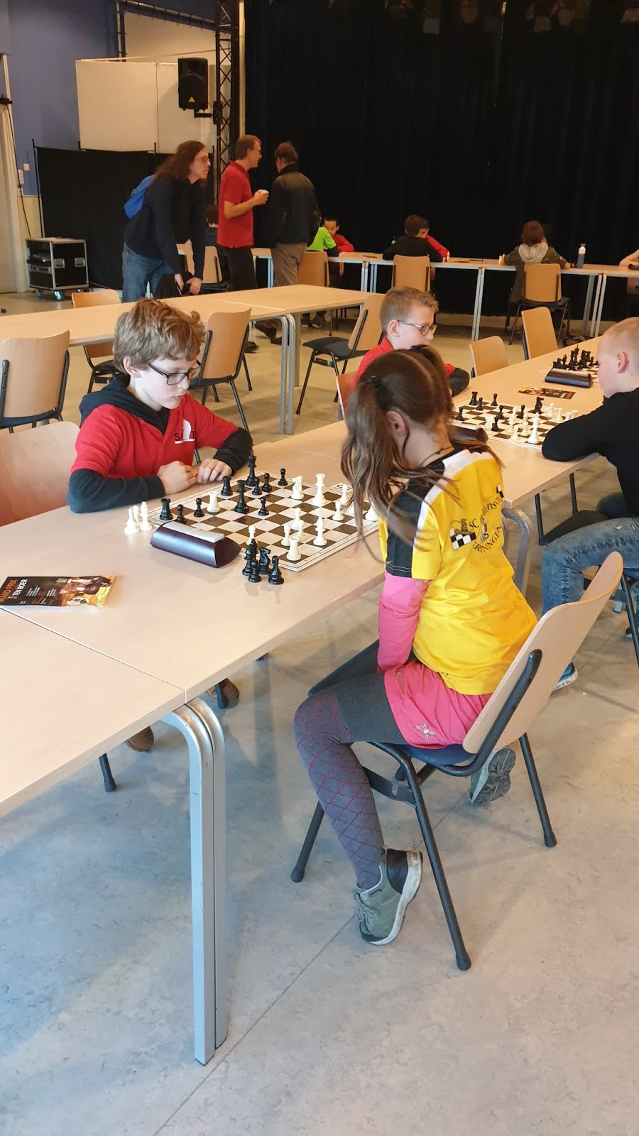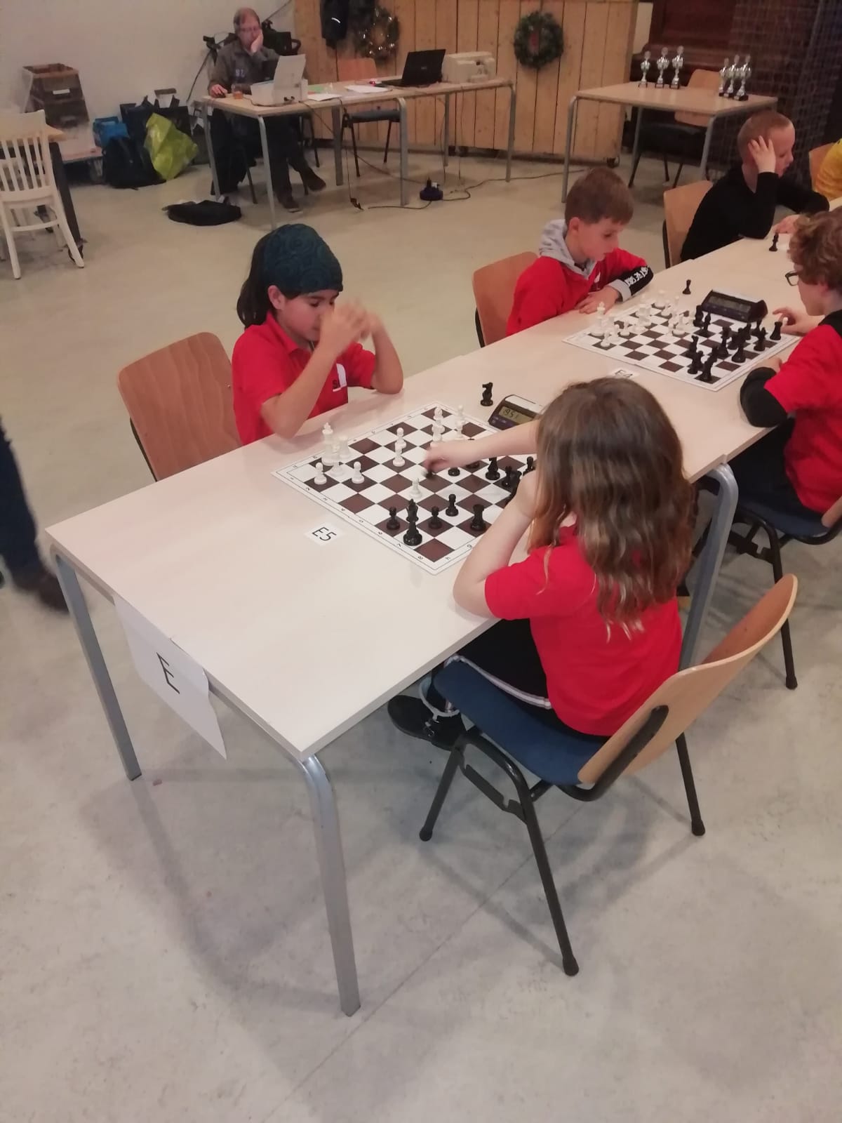 De indeling was wat onevenwichtig. Zo zat Noa tot onze grote schrik in de C-poule. Ook Tessel zat hoog in de B-poule. Eline zat pas in de D-poule. Toch wist elke jeugdschaker van onze club er het beste van te maken.