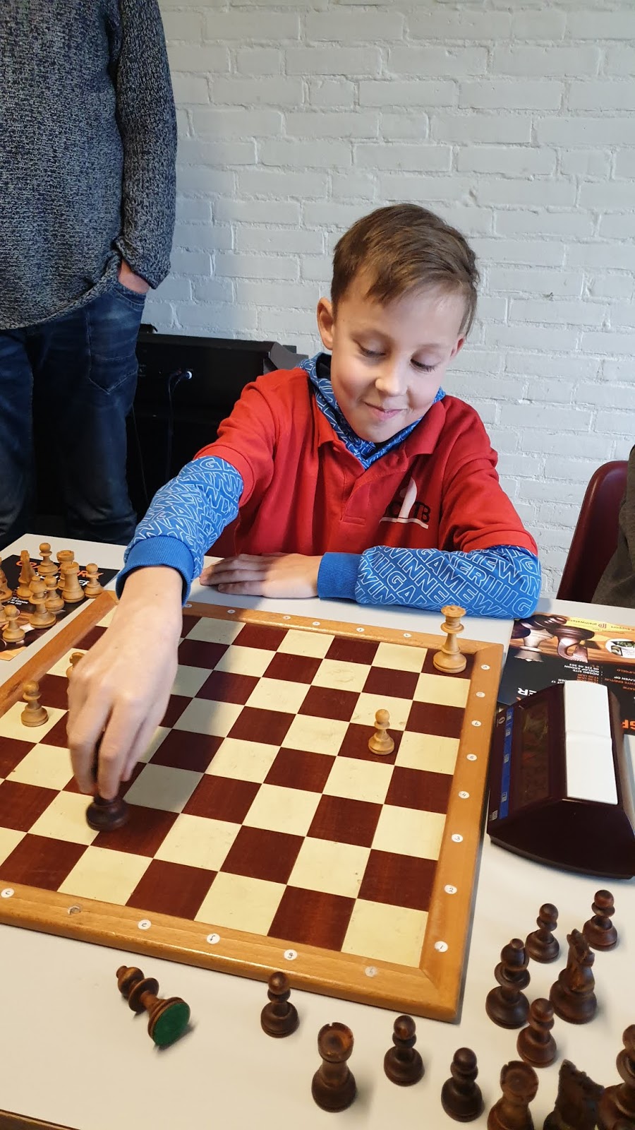 Maar dan zo’n partij tussen twee broers. Deen speelde goed. Hij wilde graag derde worden, en Abe wilde graag winnen om kampioen te kunnen worden. Eerder had ik al een partij Lego-chess gespeeld tegen Deen en was blij dat ik met remise weg kwam.