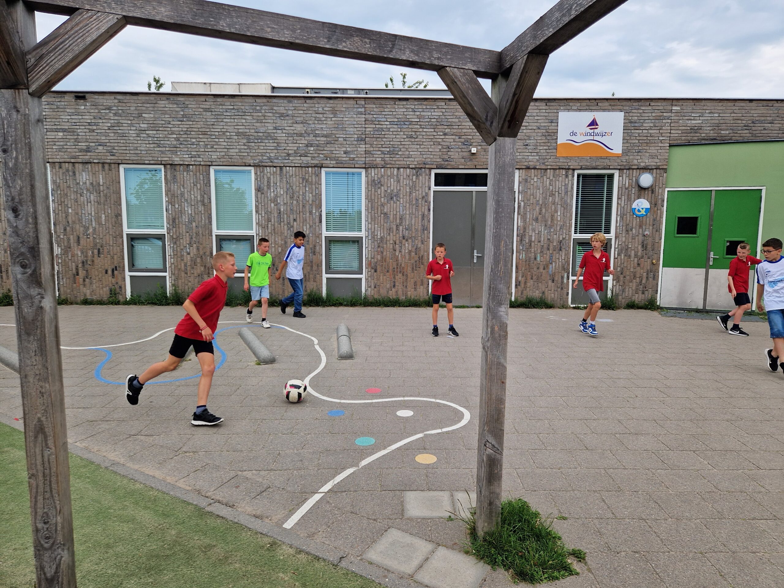 Bij het voerballen buiten gaf de begeleiding wel aan dat we waarschijnlijk 1 keer winst en 1 keer een gelijkspel nodig hadden om ons te plaatsen voor de finale. Want uit de vorige vier keer op het NK wisten we dat het vooral op de laatste twee ronden aan zou komen om ons bij de beste 8 te scharen en dus de finale te halen. In de vijfde ronde mochten we tegen de Anne Frankschool uit Leiden. Een sympathieke tegenstander.