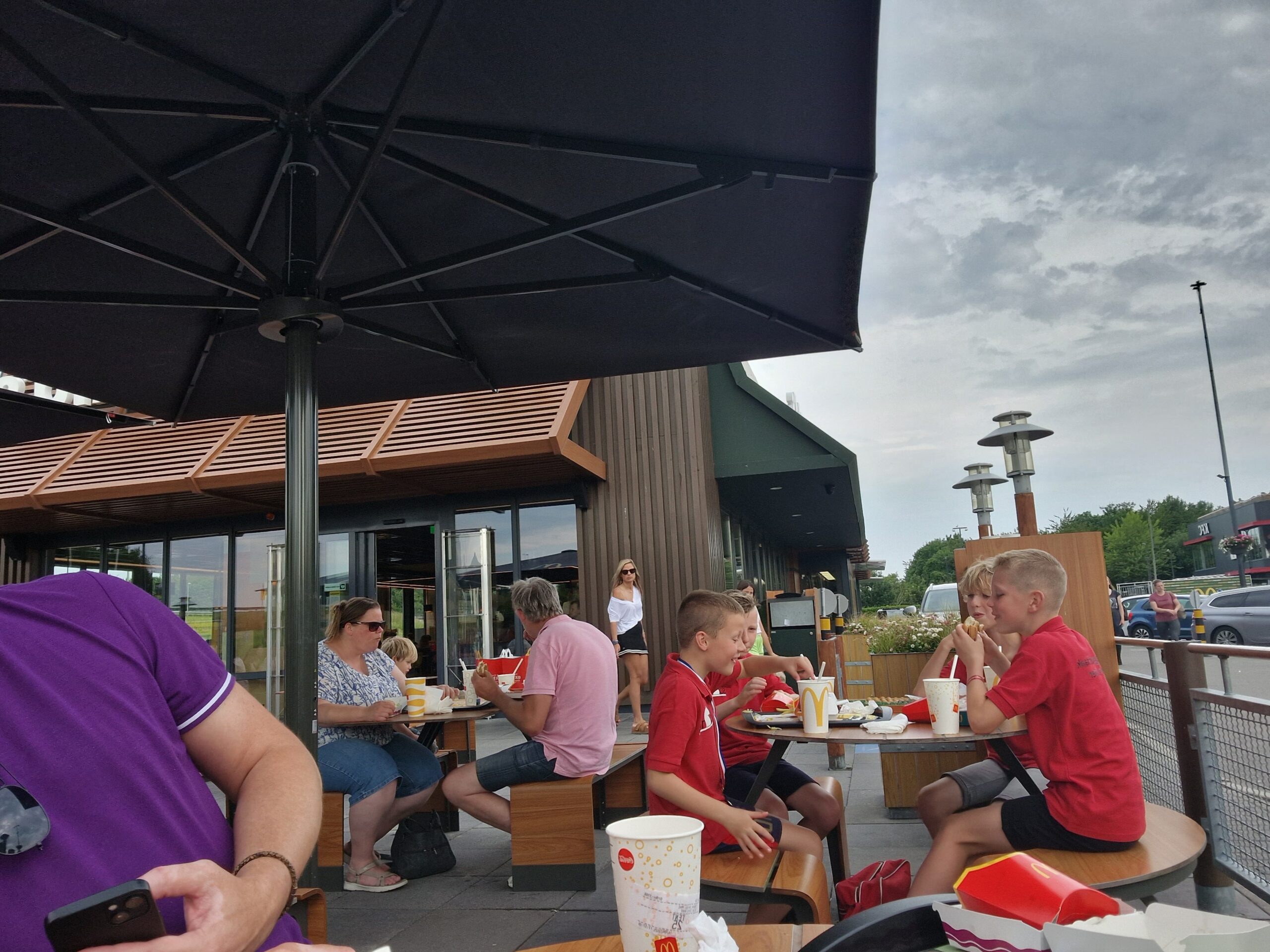 Toen we naar buiten gingen om Joris, Thijs, Milan en Sven in te lichten was het schoolplein even te klein! De jeugd spoot alle kanten op. Een feestelijke terugreis volgde met eten in Lelystad. En wat werd erbij gepakt toen we onze bestelling hadden gedaan? Het schaakbord met gezamenlijk een partij spelen of suggesties doen in de analyse van een stelling. Wat een harmonieus team! Geweldig. Dank Thijs, Milan, Sven en Joris voor deze onvergetelijke dag in Almere!