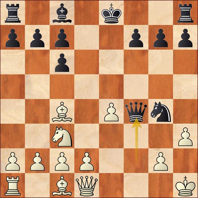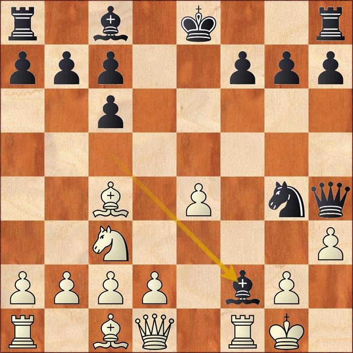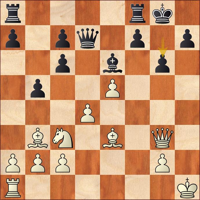 Gelukkig ziet Joris de enige zet die de strijd op gang houdt. 9. Kh1 Dg3 kost de dame want na 10. hxg4 volgt 10… Dh4# dus alleen 10. Dxg4 Lxg4 11. Txf2 blijft dan over.