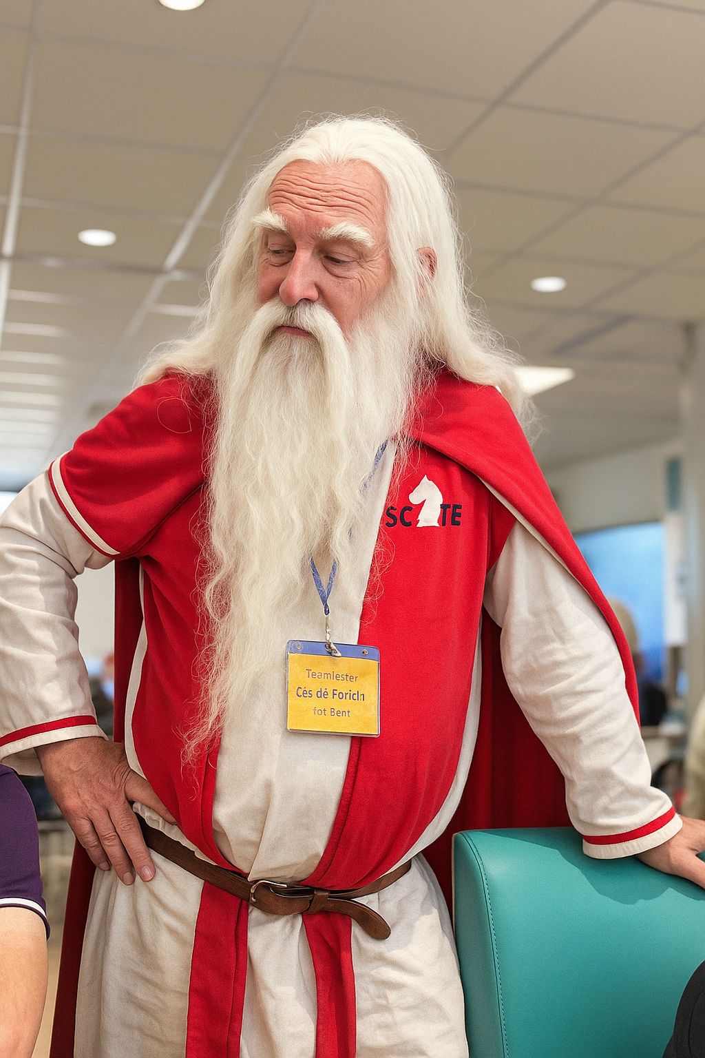 De sfeer onderling bij de begeleiding (grappend noemden we elkaar de hele dag al materiaalcommissaris, masseur, chauffeur van de spelersbus en video-analist) was al jolig, maar opeens was er de mare dat we in Ten Boer een schaakdruïde hebben die speciale toverdrank heeft gebrouwd en dat Bram als kind per ongeluk in de ketel met de toverdrank is gevallen.
