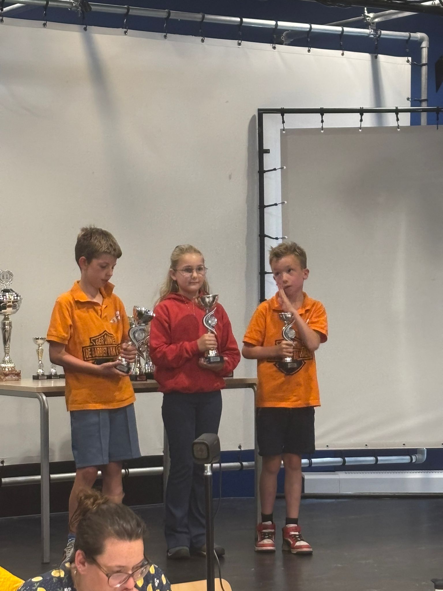 En dat was opeens het beeld dat gistermiddag bij ons opkwam toen we doorkregen dat de Fontein zich had geplaatst voor de finale van het BSK over twee weken in Arnhem. Van de 2300 schoolteams die elk jaar meedoen, komen er uiteindelijk 72 in de landelijke halve finale. Van die 72 teams plaatsen er zich slechts 24, net iets meer dan 1%, voor de finale. En dan gaat het gewoonlijk over scholen uit grote steden. Laat ik de plaatsen van de scholen die naar de finale gaan maar eens opnoemen: Amsterdam, Amstelveen, Hilversum, Leeuwarden, Hilversum, Muiden, Groningen, Utrecht, Apeldoorn, Bussum, Arnhem, Venlo, Eindhoven, Schiedam, Rotterdam, Wassenaar, Leiderdorp, Spijkenisse, Den Hoorn en ……. Ten Boer! Marcel, de vader van Sven, benoemde het als eerste: dat is toch wel heel bijzonder dat je als klein dorpje, Ten Boer, opeens in dat rijtje met grote steden staat. En de buzz ging na afloop ook rond in Almere (‘Ten Boer? Waar ligt dat?’).