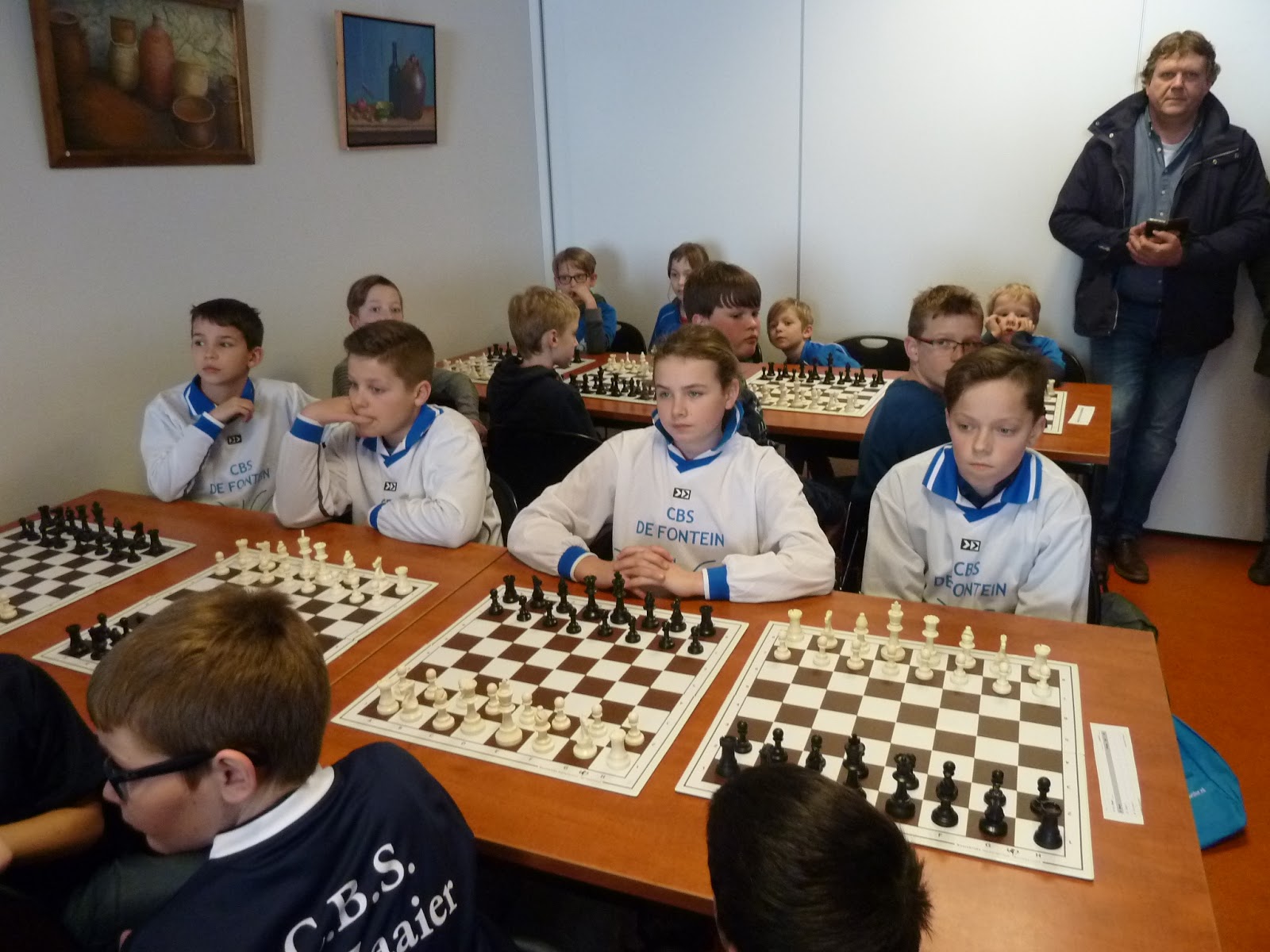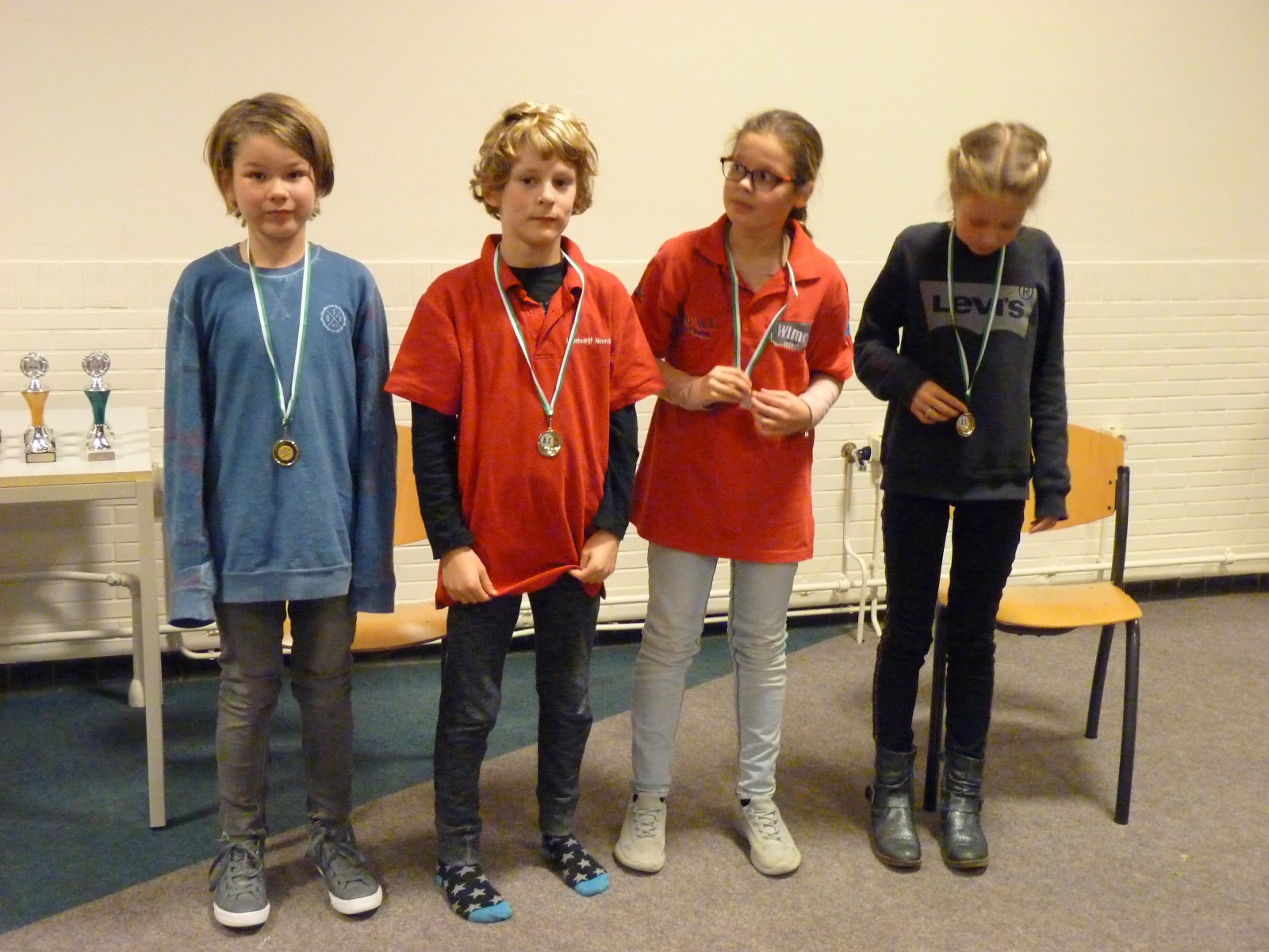 schoolschaakteams gezeten die 4de en 5de zijn geworden