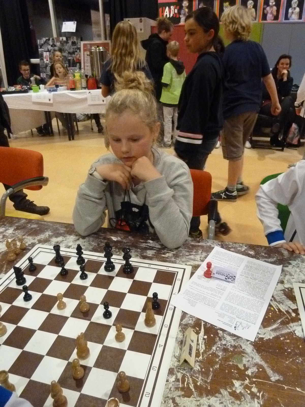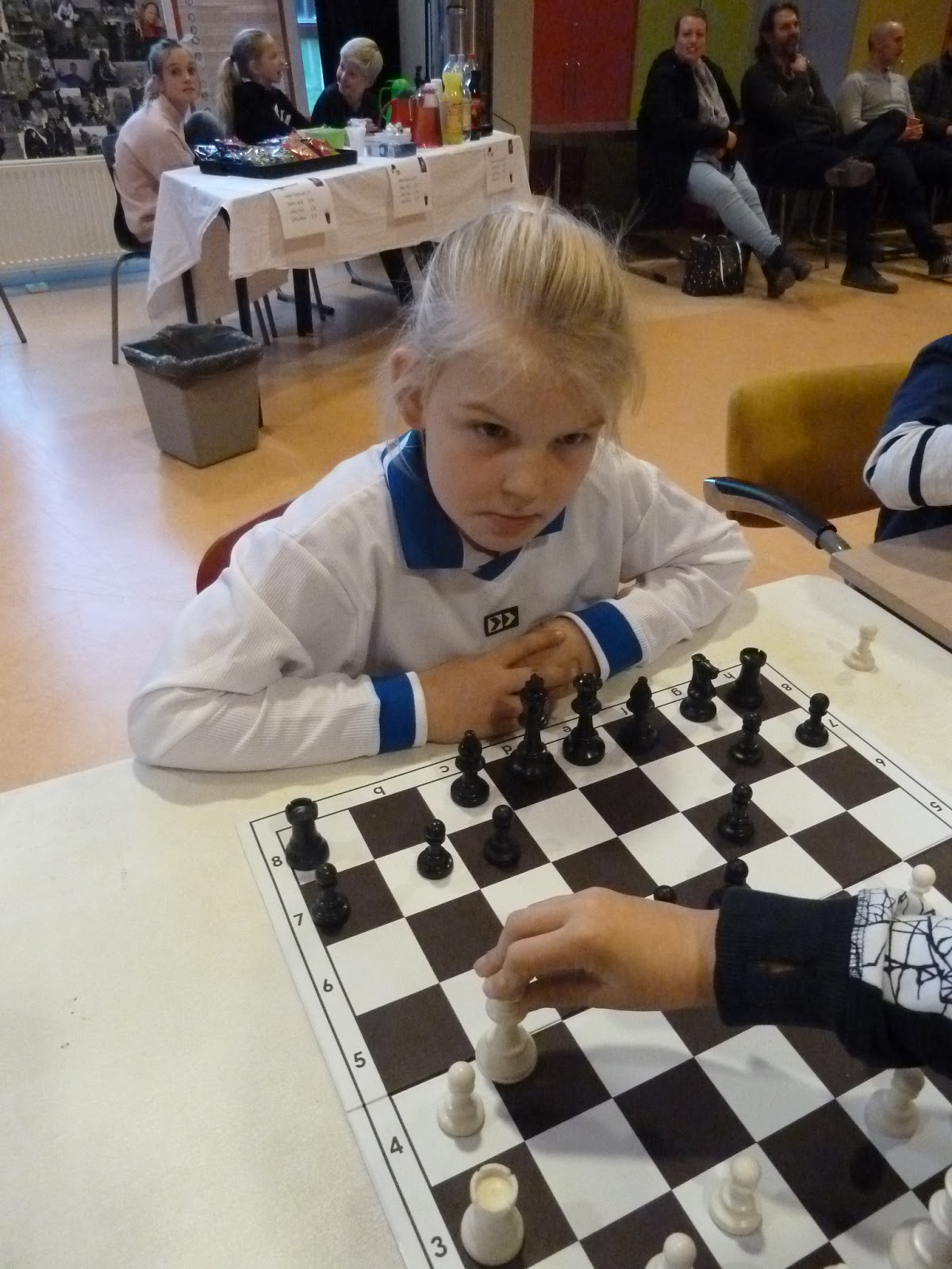 Danique zat een groep hoger. Ze begon sterk met 2 uit 2 maar kwam toen de schaker met de hamer tegen. Met 3 uit 7 werd ze vijfde.