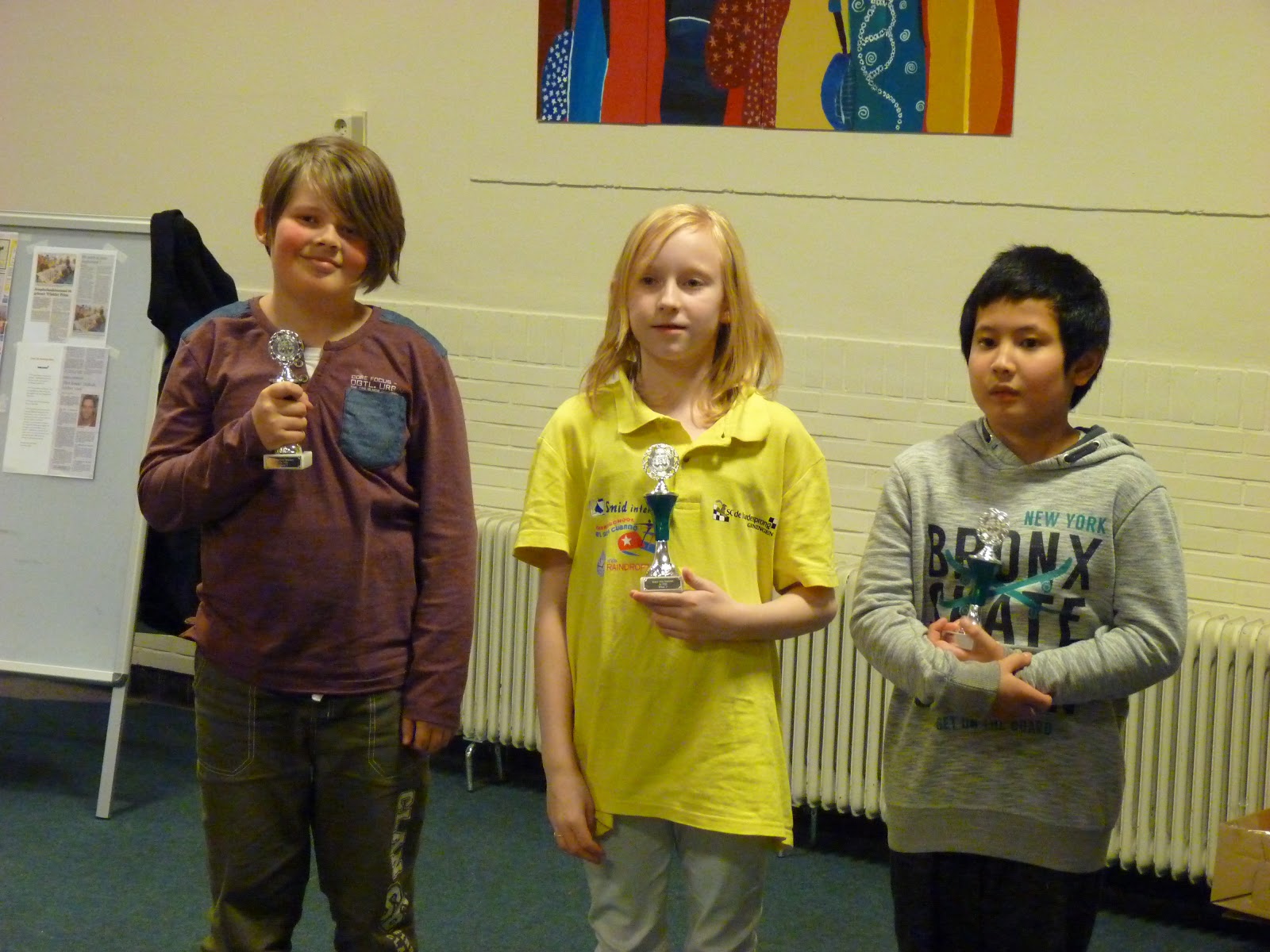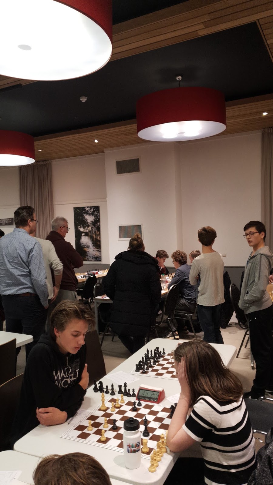Ik denk dat we in Noord Nederland trots mogen zijn op alle vrijwilligers die zich inzetten voor het jeugdschaken. Hiddo is daar overigens een goed voorbeeld van. Ook elke jeugdspeler doet op zijn niveau zijn best en we moeten dit stimuleren door positieve zaken te laten prevaleren boven de zaken die minder goed gaan. Tenslotte mogen we blij zijn dat er zoveel sponsoren zijn, die schaken en vooral de jeugd als toekomst zien en daar in willen investeren. Door mijnafwezigheid heb ik niet meegekregen hoe het met iedereen is gegaan. Wel begreep ik dat jeugdschakers en ouders erg van de ambiance en de organisatie genoten. Er was een goed nevenprogramma. Vooral Richard, de vader van Olaf, coördineerde onze grote afvaardiging. Veel dank daarvoor. Elisa en Jan speelden in de C-categorie. Jan had al een tijdje geen toernooi gespeeld en nu liep het ook niet lekker. Elisa deed het iets beter maar bleef buiten de prijzen.