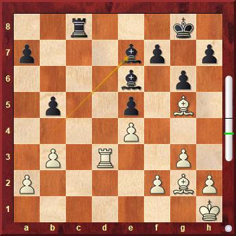 Een mooie remiseweg hier is het pionoffer 35. Txb5 Kxb5 36. Te5+ Kb6 37. Ke2 en zwart kan niet verder komen zonder pion a5 of e6 op te geven. Daan ziet de variant maar gaat voor 35. Txe6 Tf5+ 36. Kg2 en er ontstaat een enkel toreneindspel, wat kleinere remisekansen heeft.