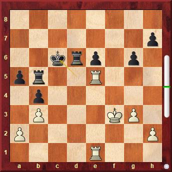 Hij heeft met veel moeite een gelijke stelling bereikt en met Kc2 is de remise binnen. Hij speelt echter moe door het spelen op increment Kc4 en moet na Tc3+ Kd4 Txb3 constateren dat het eindspel verloren is.