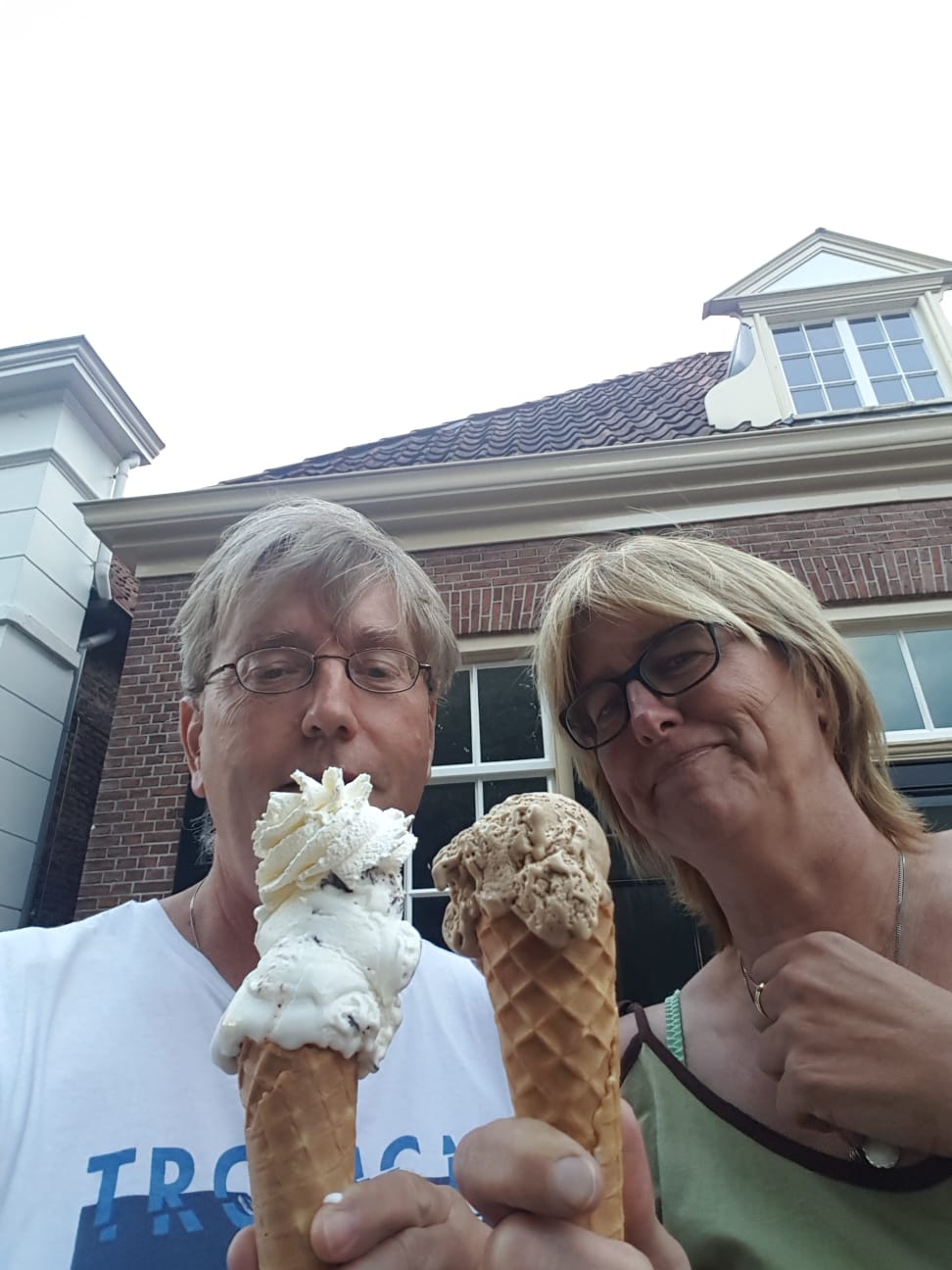 Gisteren werd de tweede ijsjesscore gevierd. Christine trakteerde een ieder. Het was zo leuk dat we pas doorhadden dat de voorzitter en de voorzittersvrouw ontbraken tot we weggingen en zij er aan kwamen. Ze besloten later via de app ons op de hoogte te stellen van het ijsje dat zij hadden besteld.