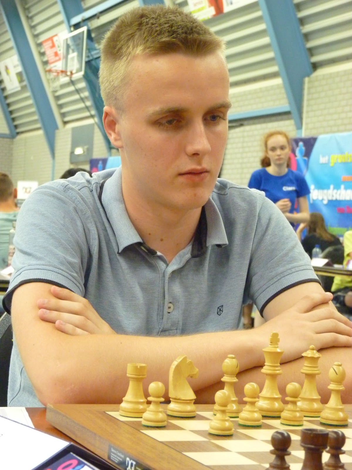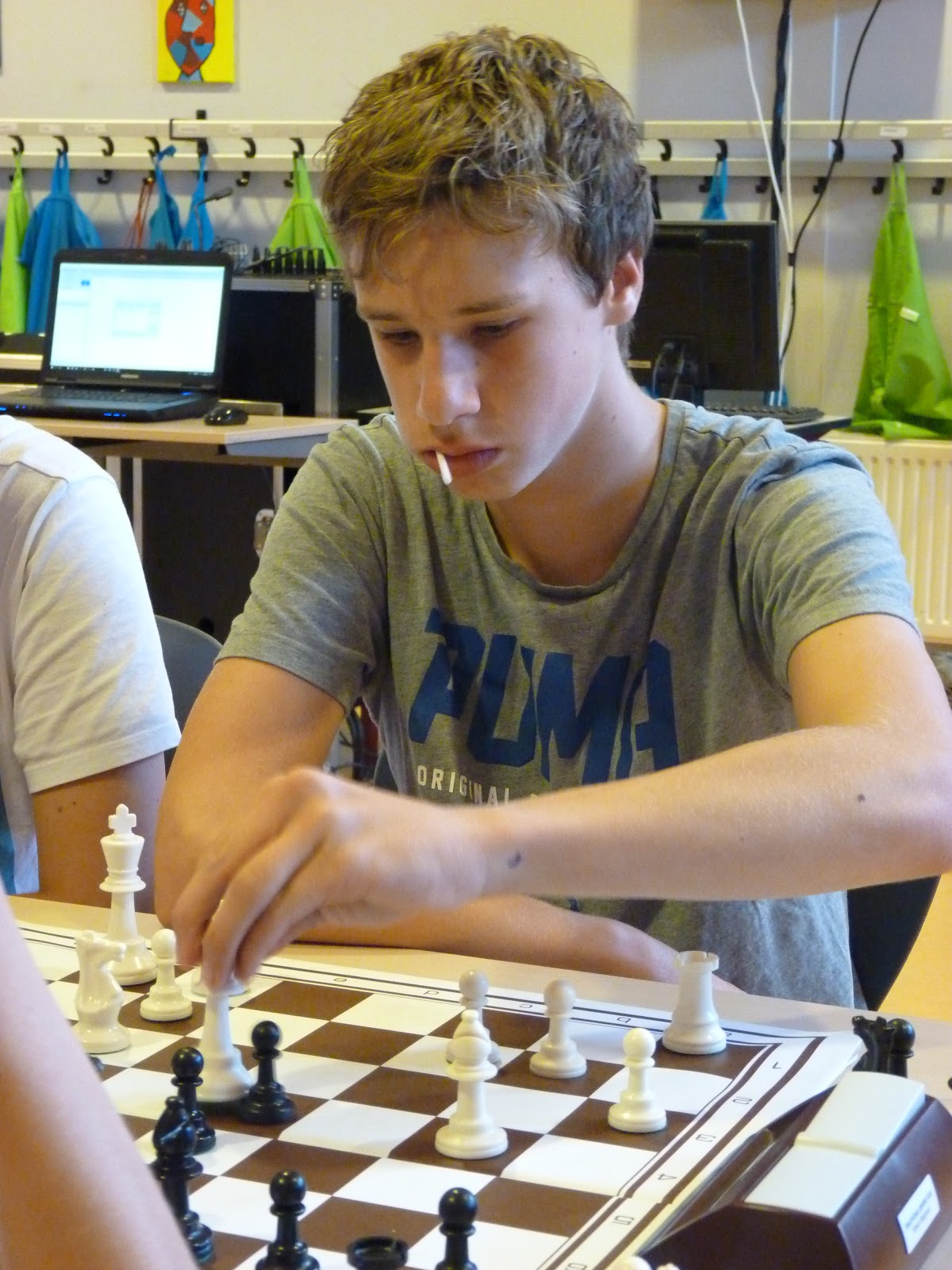 15:25 Gerbrich en Daan verliezen. Gerbrich mist de winst. Ernst verliest ook. Hij is zeker niet de mindere van zijn tegenstander Joep Westerhof. Even kan hij zelfs een toren pakken, maar als hij te snel Tc1 speelt is zijn kans verkeken. Toch is vooral het spel en het manoeuvreren met de stukken van Ernst veel beter dan van Joep. Let op Ernst de komende dagen.