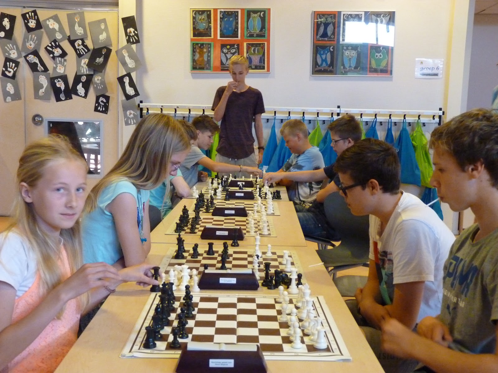 – Waar gaan we dit jaar de organisatie mee op de kast krijgen? Drie jaar geleden was het lopen tussen de borden (walkgate, mag sinds twee jaar niet meer), twee jaar geleden was het pizza achter het bord eten (pizzagate, mag sinds vorig jaar niet meer) en vorig jaar ging het om flessen water in de speelzaal meenemen (watergate, ben benieuwd of ze dit maandag en dinsdag gaan verbieden bij 35 graden). Vanavond is in elk geval door het eerste talententeam van JSN druk voorbereid. Jan, Femke, Daan, Gerbrich en Jonas hebben tot in de diepe nacht zitten bughousen.