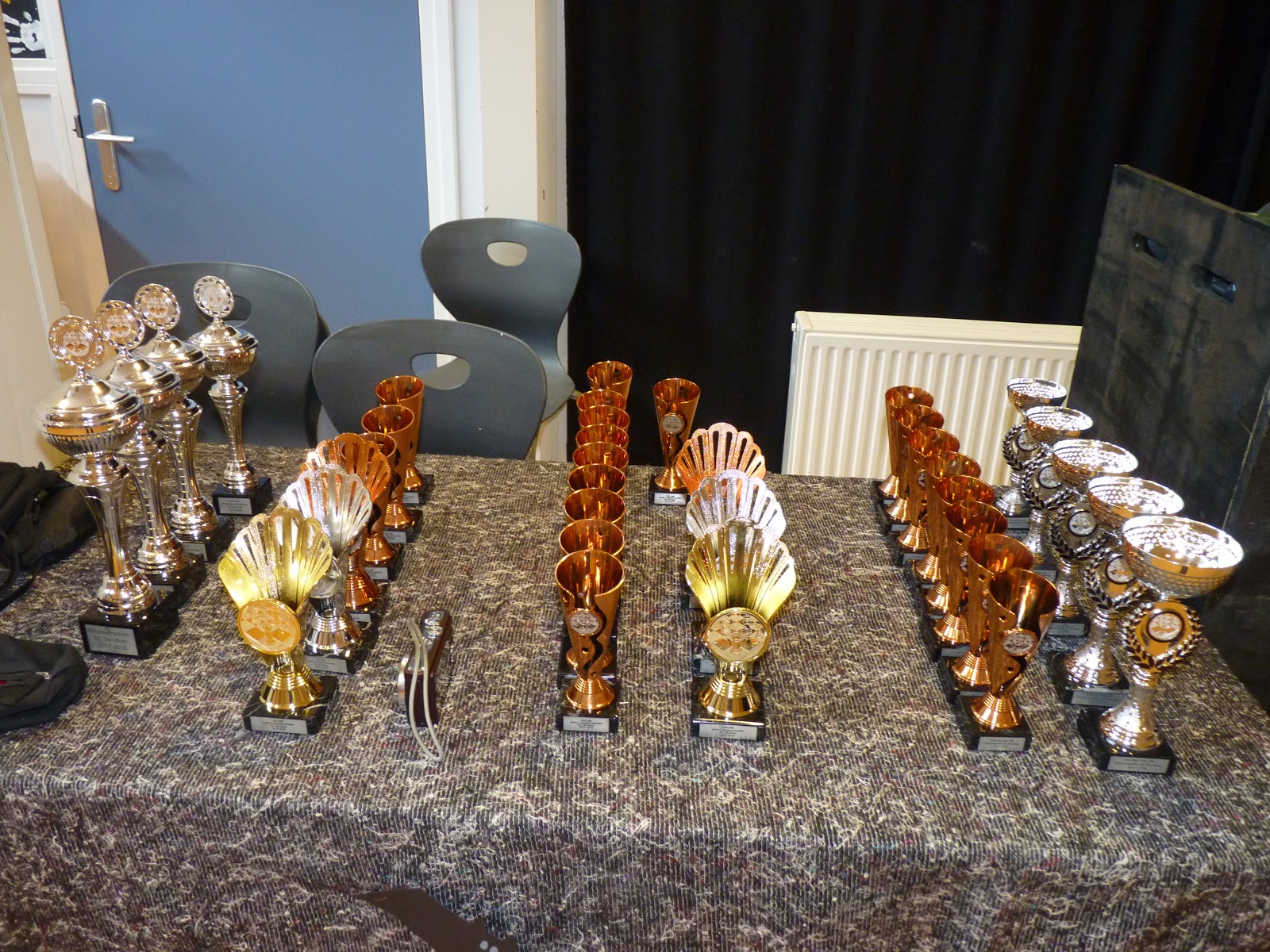 En dan een heel bijzondere prijsuitreiking: onze clubkampioen was er namelijk niet. Gerbrich heeft examen gedaan en was met haar vriendinnen op examenreis naar Zeeland. Ze probeerde nog op tijd terug te zijn, maar stakingen in het openbaar vervoer hielden haar op. Dus voor het eerst in de geschiedenis geen huldiging van de clubkampioen. Wel waren Lemée (2), Remco (3) en Rowin (4) er. Zij kregen hun bekers.