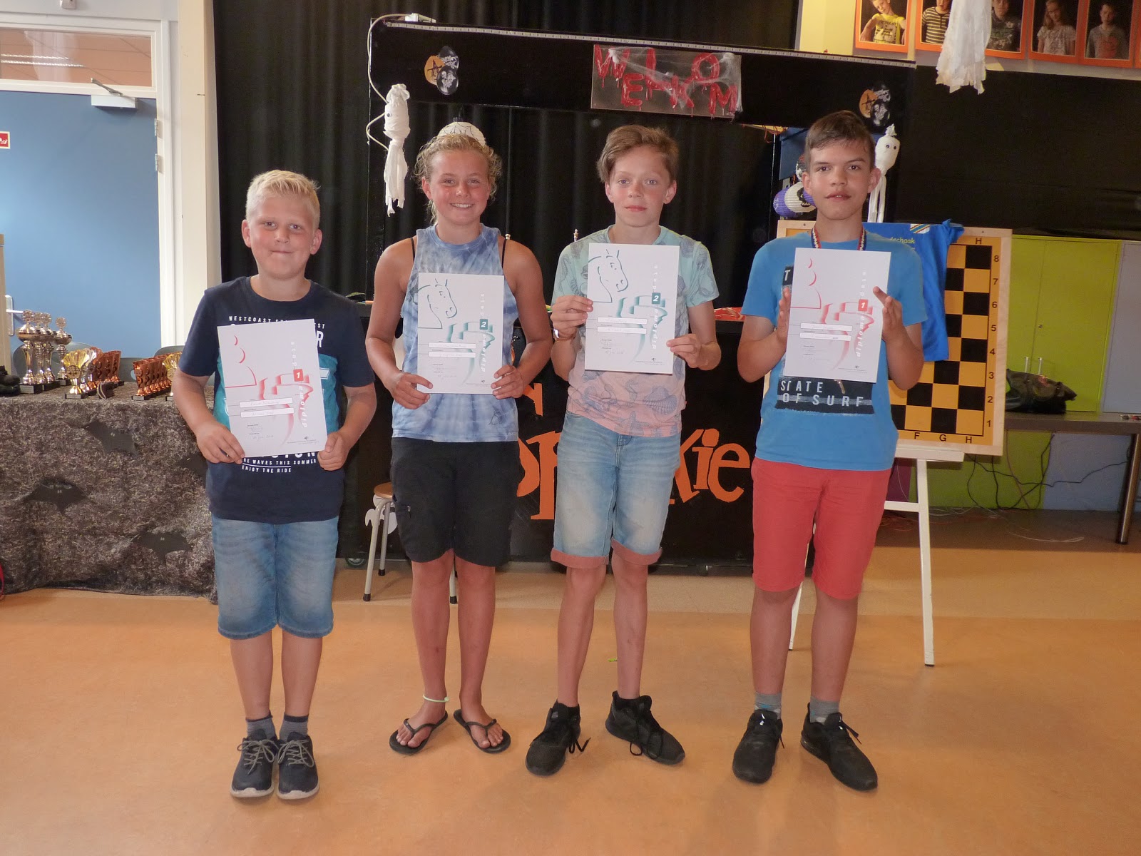 Er waren ook een paar diploma’s uit te delen. Maar liefst vier schakers haalden hun diploma. Jadon en Ewout voor stap 1 en Lisanne en Tristan voor stap 2. Van harte met jullie resultaat: allemaal dikke voldoendes.