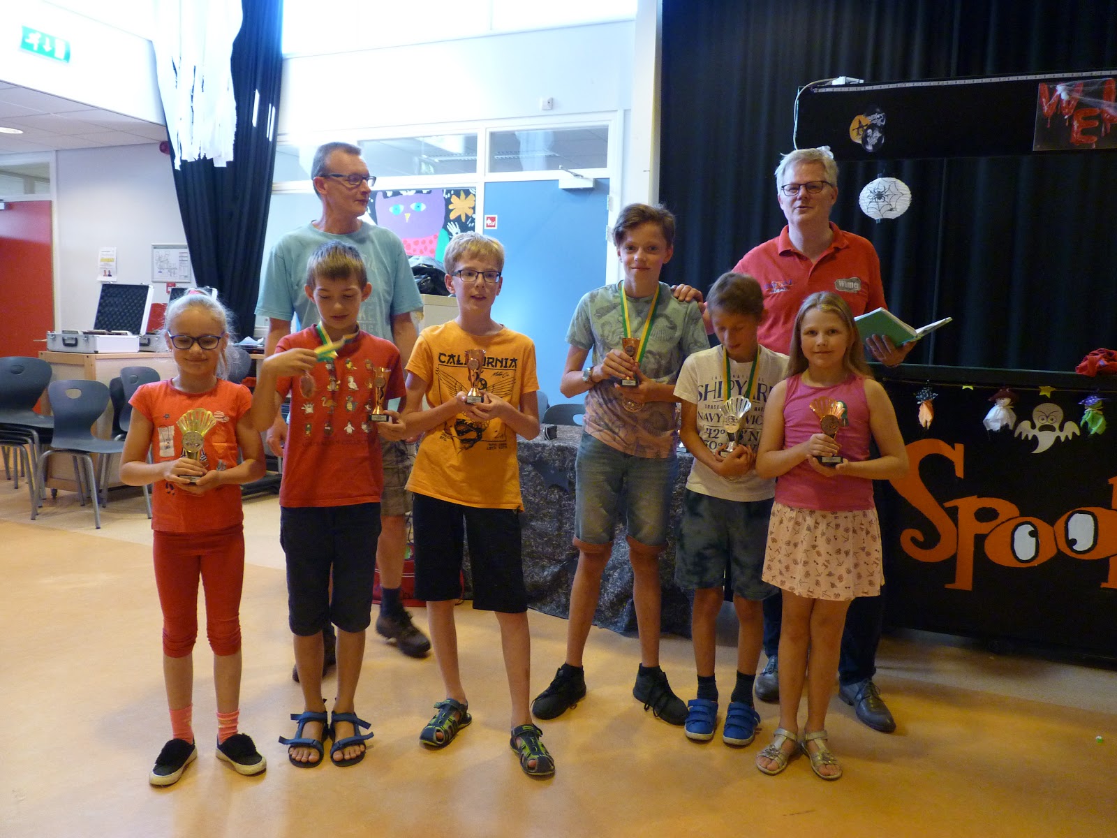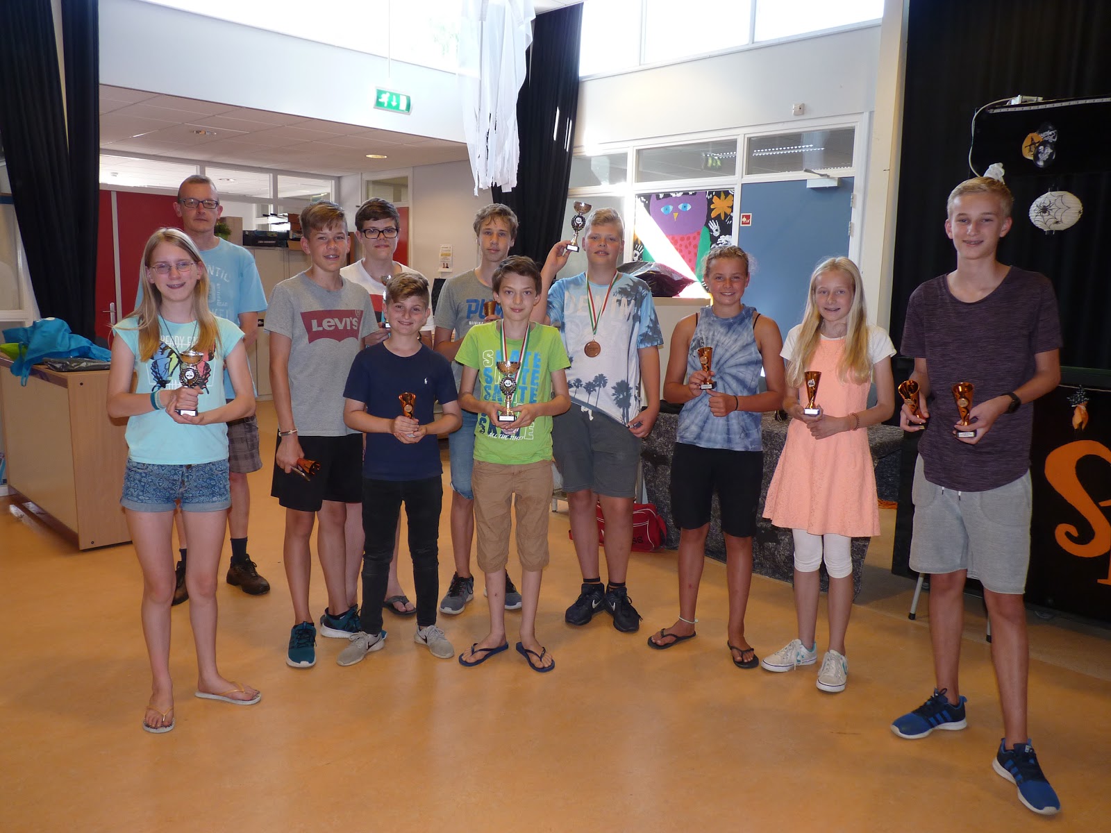 En hierna begon het prijzenfestival. In de tweede groep van de basisschool werd Ewout eerste, Jadon tweede en Danique derde.