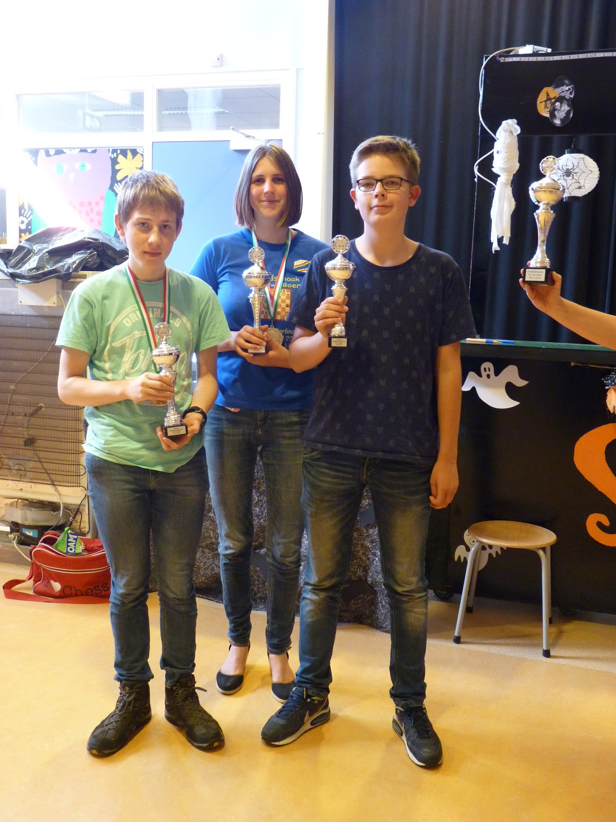 Zoals in de vorige post al geschreven: de oudste jeugd speelde op de laatste clubmiddag om de Mien Bokaal. Dat is de wisselbeker voor het snelschaakkampioenschap, genoemd naar de oude beheerster van het Buurhoes. Omdat Gerbrich er niet was, beloofde het een spannende strijd te worden. Helaas zijn de uitslagen verloren gegaan doordat de computer waar deze op stonden opnieuw is ingericht. Wat ik nog wel weet: de strijd om plek 1 was niet spannend: Lemée won al haar partijen.