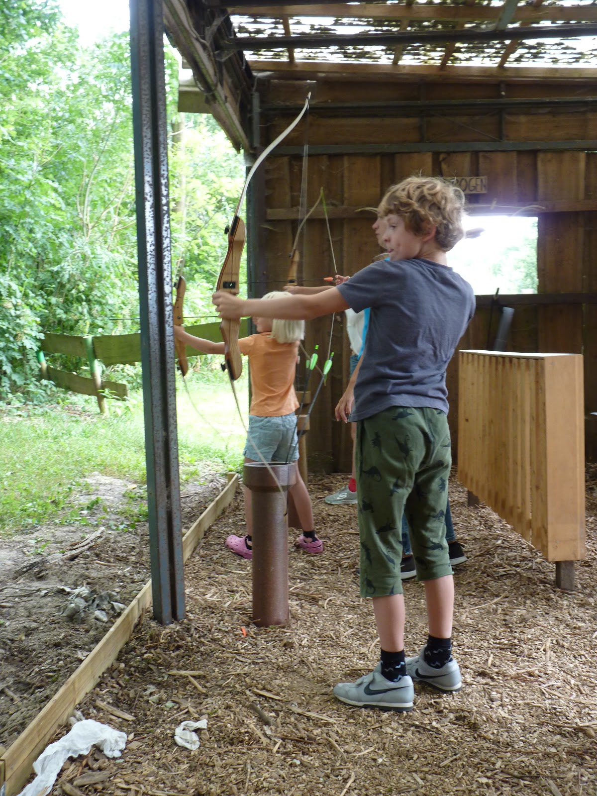 Het boogschieten was heel leuk. Paulien, Raphaël, Gijs en Maarten wisten ondanks hun jeugdige leeftijd vaak de roos te treffen.