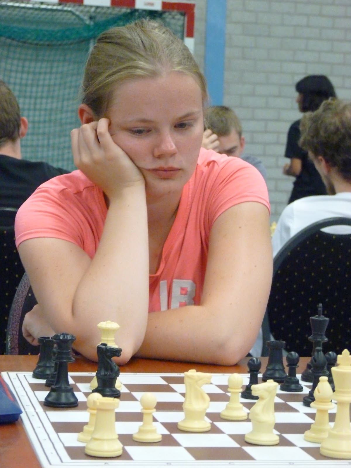 Gerbrich heeft een pion geofferd tegen een sterke tegenstander.
