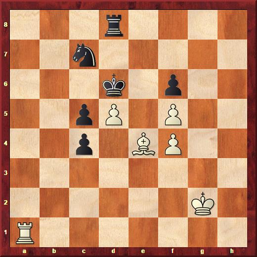 Hier kan 1… Pxd5 2. Lxd5 Kxd5 3. Td1+ Ke4 4. Txd8 c3 met winst (variant van Jan Bosma)