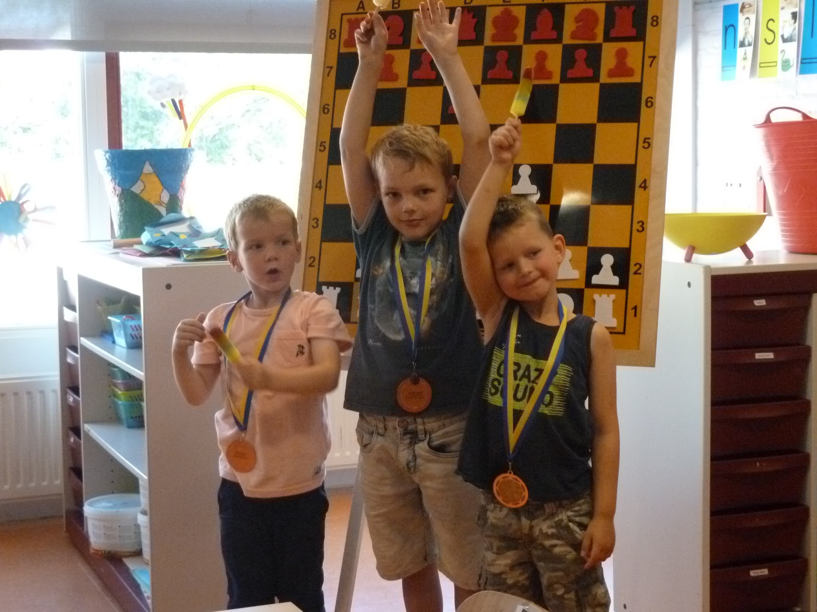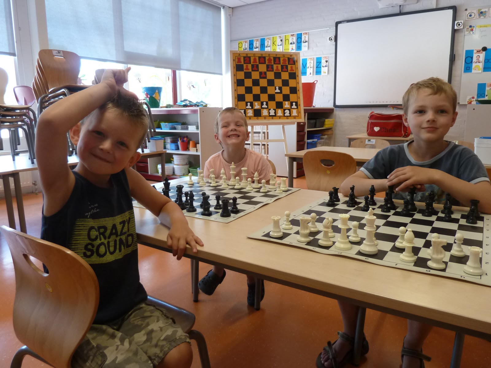 klassen. Nu kan je soms niet schaken omdat de schaakspelen in groep 7 liggen,