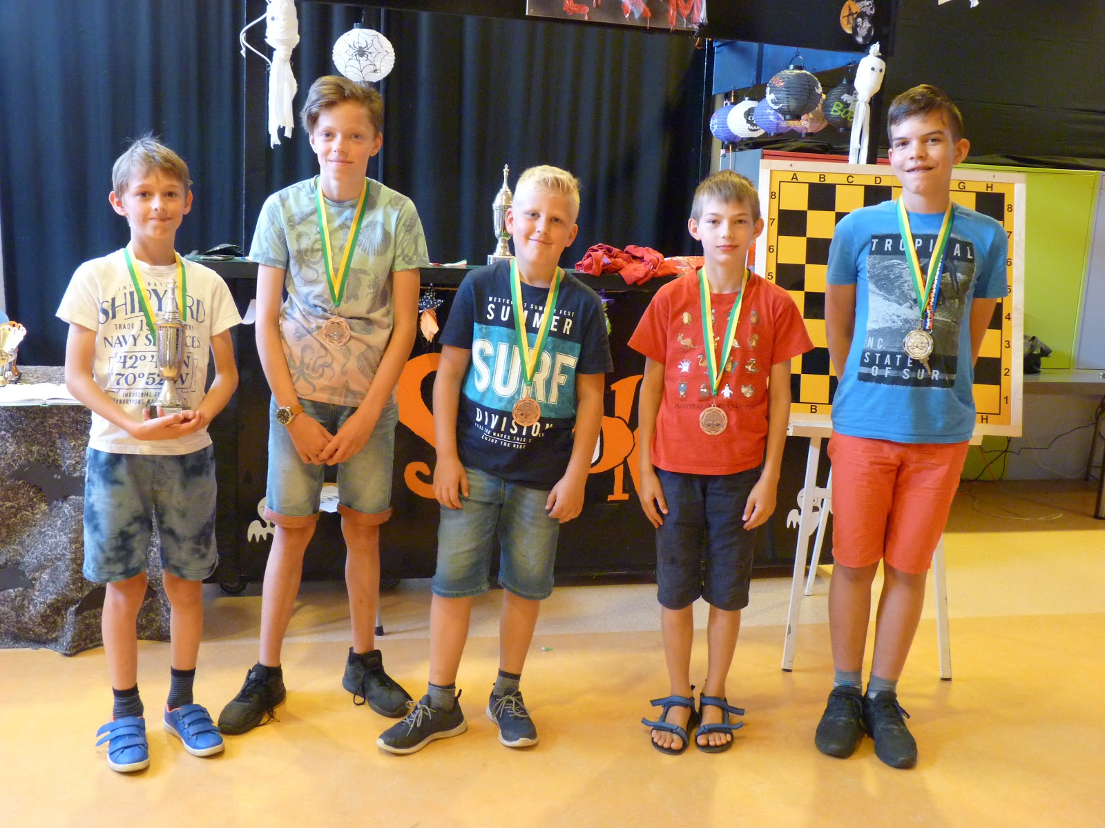 Op 7 juli is dat voor dit schooljaar afgesloten. Voor de jeugd uit groep 8 de laatste schaakles! Voor de leiding gaf dit een weemoedig gevoel. Drie van de groep van 8 scholieren hebben vier jaar les gehad: Gabriëlle, Emma en Marit. En ze namen afscheid met het diploma voor stap 2. Na stap 1 en stap 1+ nu dus ook stap 2. Samen overigens met hun klasgenoten Mark, Rens,