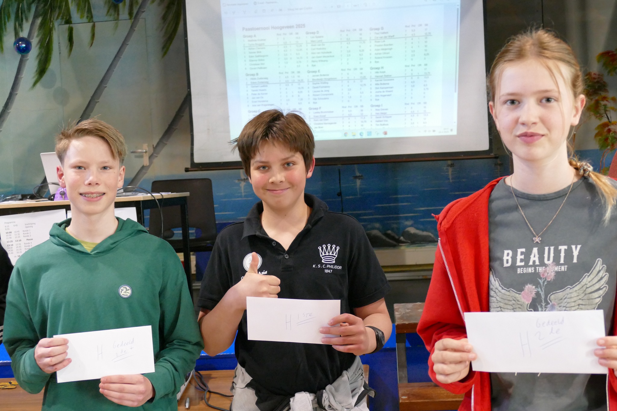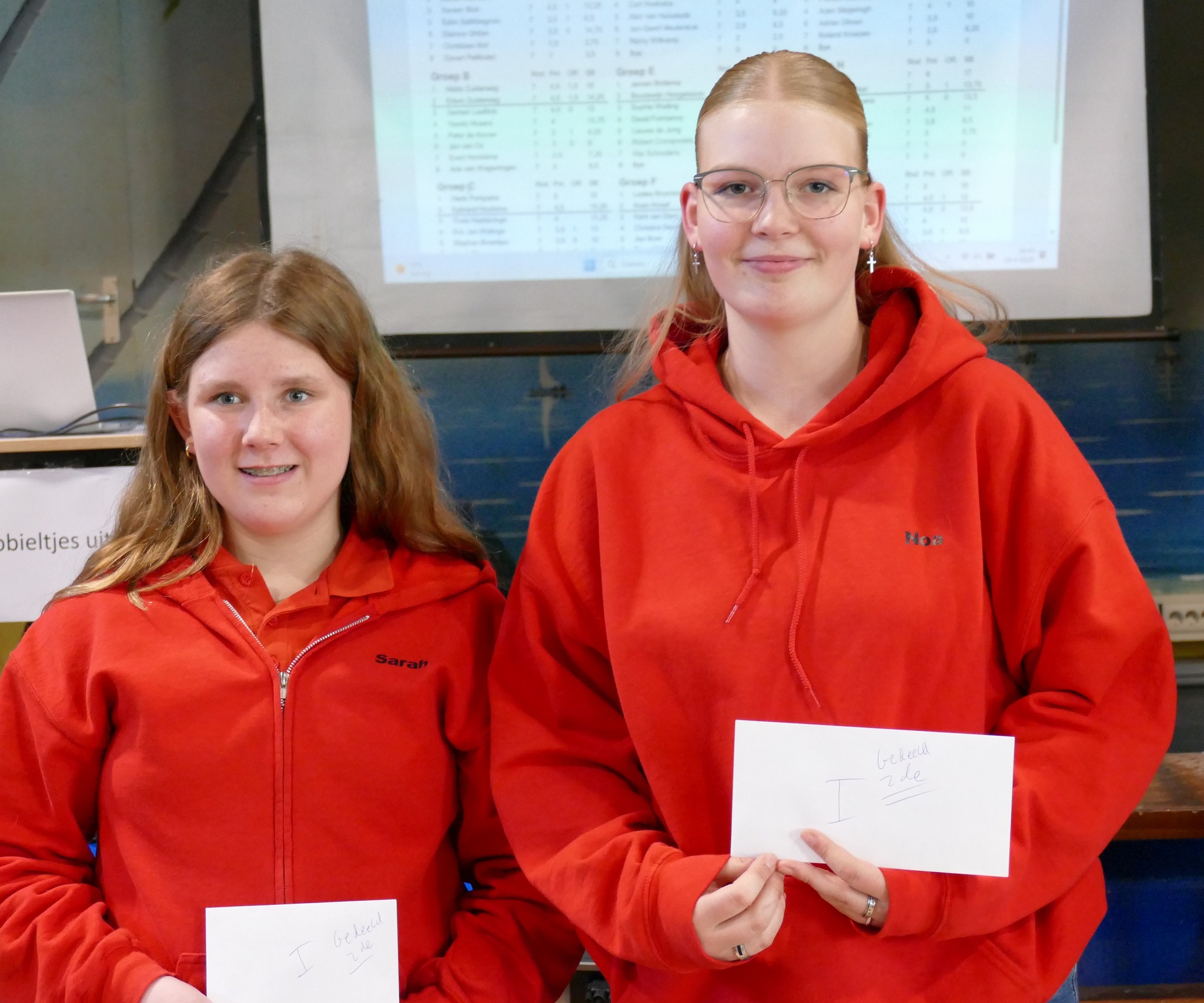 Sarah en Noa speelden in groep I. Sarah haalde een uitstekende tweede prijs. Wat echt superleuk is, is de overwinning van Noa. Ze studeert hard op haar schaken, is een steun en toeverlaat op de clubmiddag als jeugdleider in de eerste groep en haar schaken gaat ook nog eens met sprongen vooruit. Prachtig dus die eerste prijs in Hoogeveen.