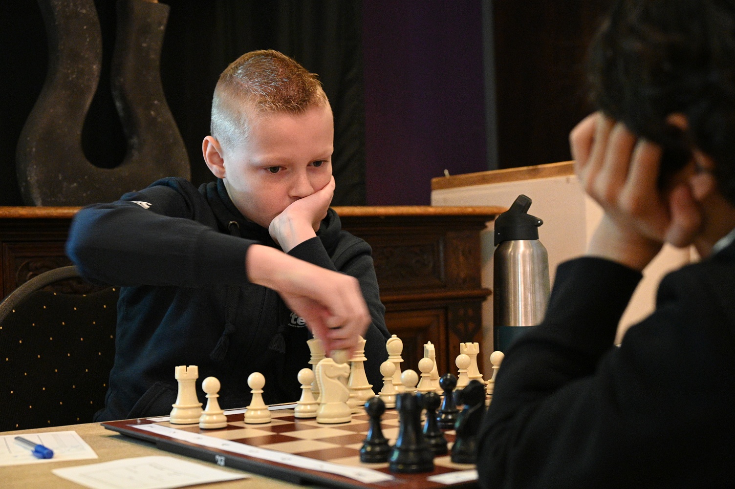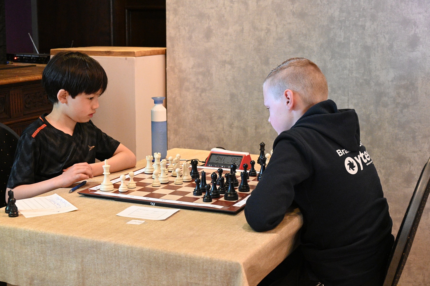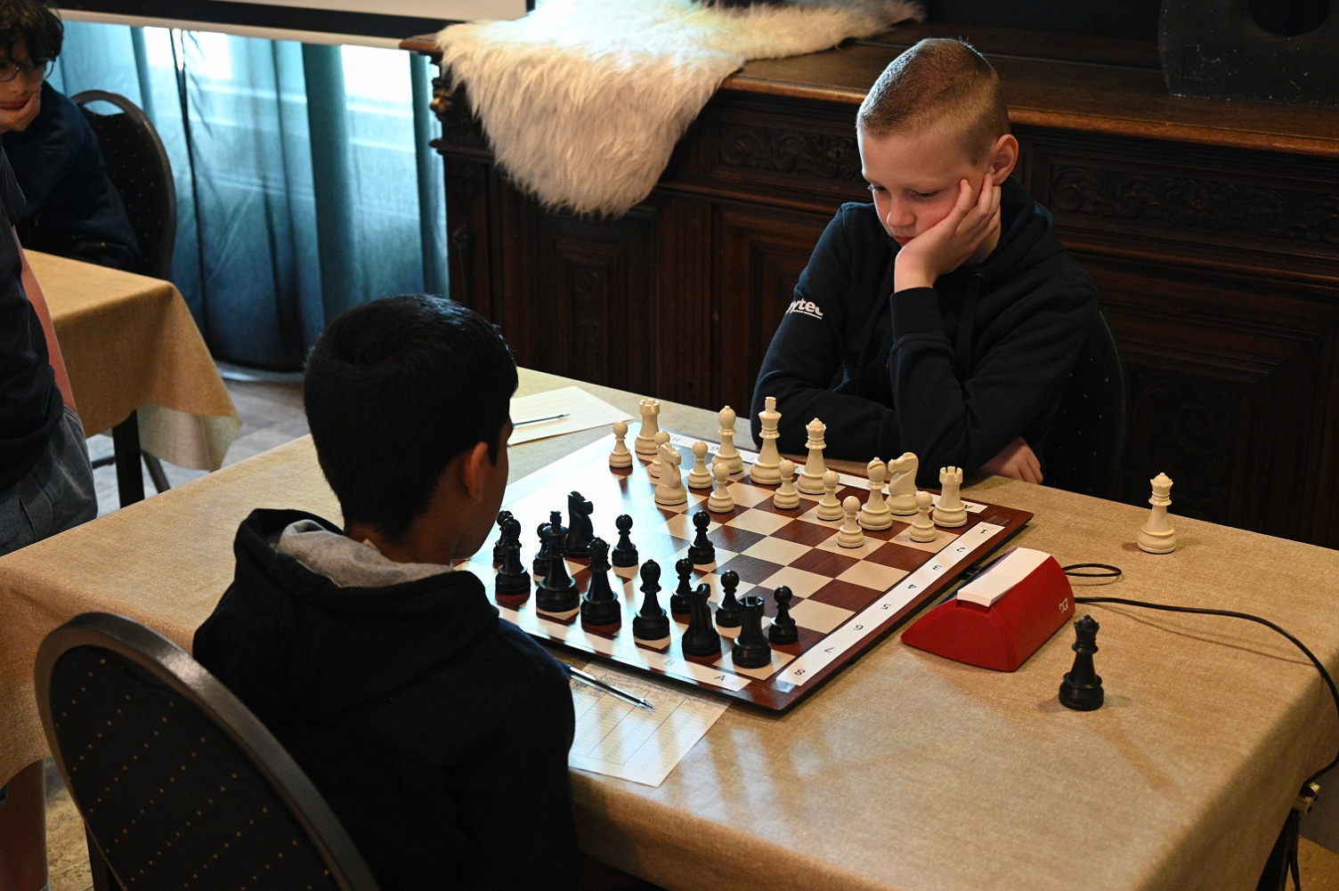 Bram speelt als 9-jarige mee in de categorie tot en met 18 jaar. Ik weet niet of dit vaak is voorgekomen. Ik kan het me niet herinneren. In elk geval was te start best wel pittig. Tegenstander Mika stond lang iets beter in de partij. Bram heeft ondertussen veel ervaring met lange partijen tegen sterke tegenstanders.