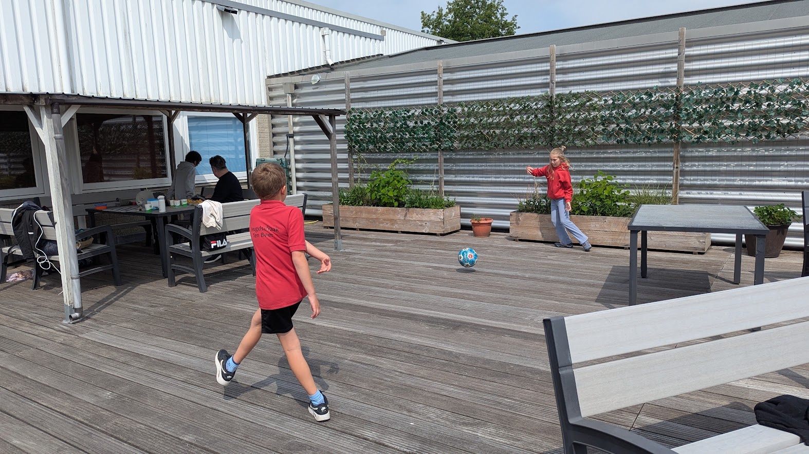 Het is daardoor niet alleen schaken maar ook samen voetballen, praten en spelletjes doen. Precies het soort omgeving dat je zoekt om jeugd te enthousiasmeren voor schaken door de driehoek prestatie-groei-verbinding in balans te brengen.