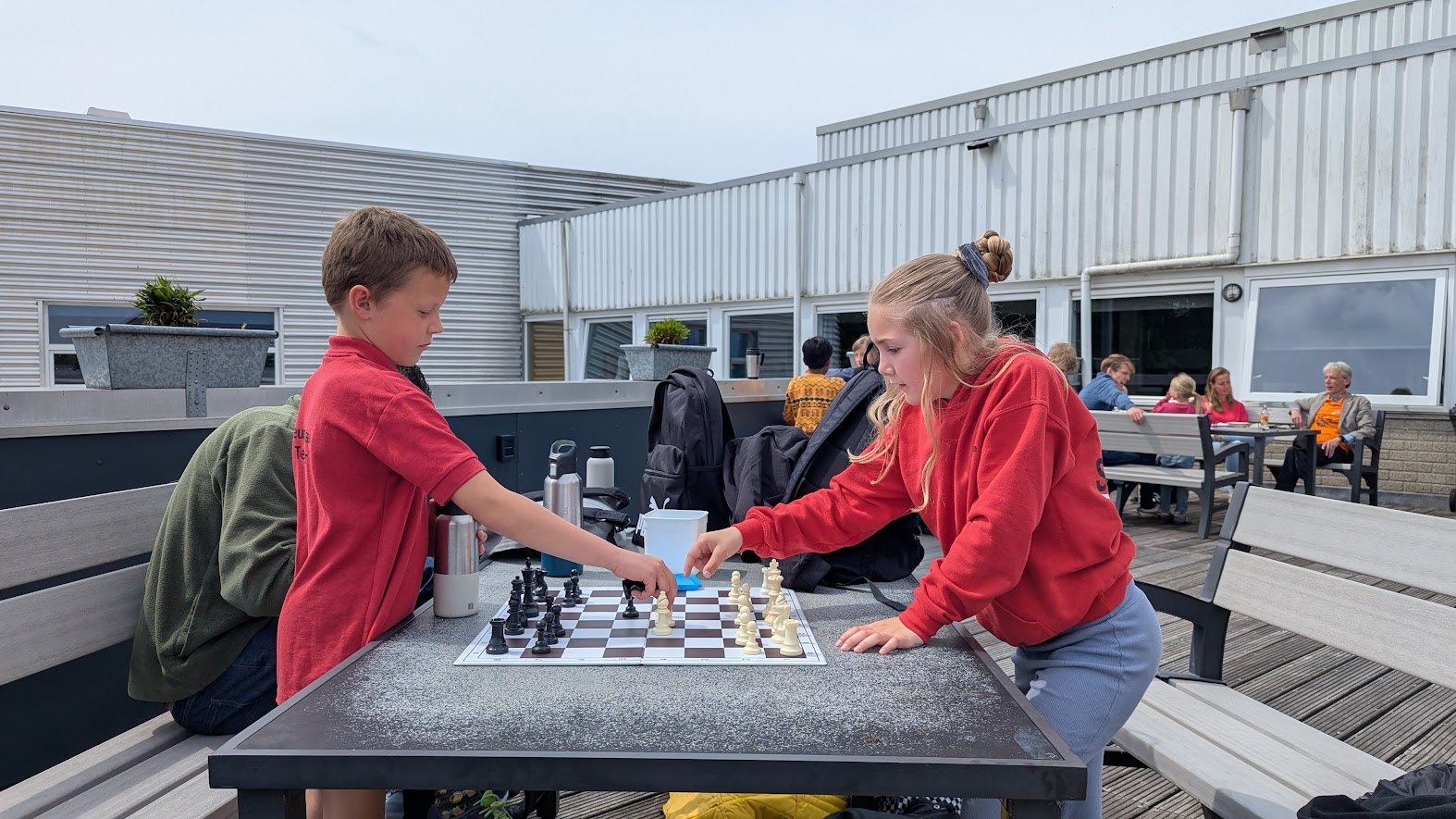 Gisteren een goede dag voor de Boerster jeugd. Ongeveer tegelijkertijd waren Hannah en Bram klaar met een overwinning. Joris en Anneloes zijn nu ook gearriveerd, dus de sfeer op het park wordt ook steeds meer inspirerend. Precies wat je wil: het gaat niet alleen om het schaken maar ook om het maken van prachtige herinneringen.