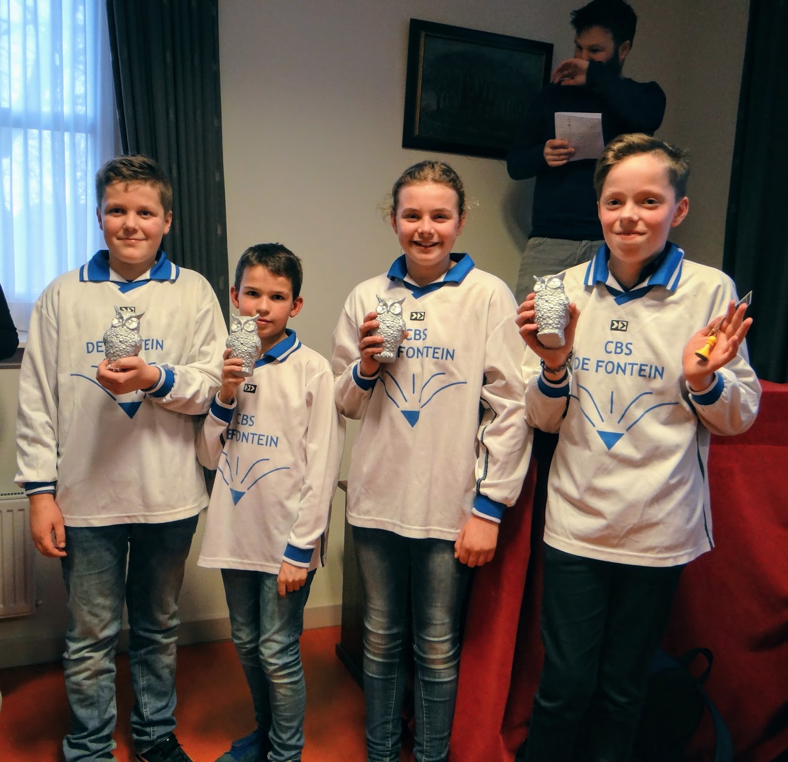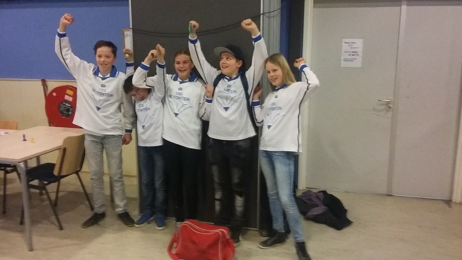 Team 1 van de Fontein bestaande uit Thijn, Rens, Lisanne en Tristan maakte geen fouten in haar poule. Alle wedstrijden werden met overmacht gewonnen. Het Combinatieteam zat in de meest interessante poule. Hier geen duidelijk sterkste team en doordat Elisa alle partijen won deze middag, was het lang onduidelijk wie door zou gaan naar de kampioenspoule. Uiteindelijk werd het team derde in de poule. Net als het derde team van de Fontein. De jonkies Tim, Danique, Ivar en Tessel scoorden er lustig op los. Zij zijn de toekomst voor de Fontein.