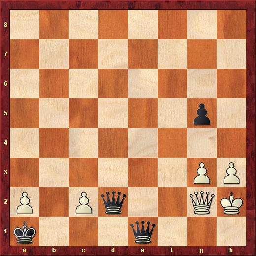 In deze stelling zijn er twee zetten mogelijk: Ke2 of Kd2. Welke wint? en welke verliest? Ke2 verliest vanwege Dh1-e4+ en De4-g6. Kd2 wint vanwege Dh1-d5+ Kd2-c1 Dd5-h1+ Kc1-b2 met ondekbaar mat. Elisa koos voor Ke2, maar won toch toen de tegenstandster op een gegeven moment de witte koning naar h2 liet lopen en het alsnog mat werd.
