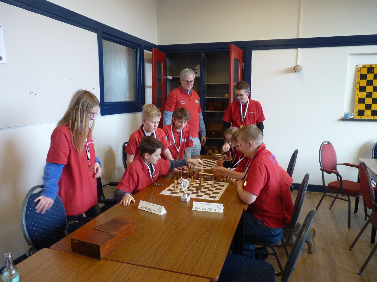Vandaag is in het Denksportcentrum de Jeugdclub Competitie gehouden. Er deden 10 teams mee in de 3 categorieën. Het werd een heel leuke middag. Goed georganiseerd door Marjet en Roland. Ik wil namens onze club nogmaals opmerken, hoe dankbaar zijn dat zij met z’n tweeën het jeugdschaken in Noord Nederland mogelijk maken. Ze doen er gigantisch veel voor.