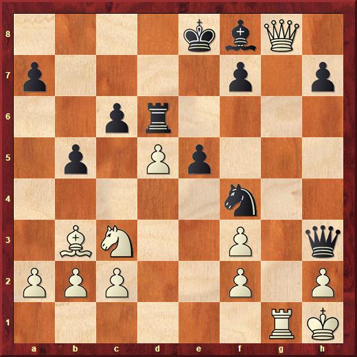 Elisa speelt haar beste partij van vandaag. Eerst laat ze inslaan op f7 toe, en met twee pionnen meer staat wit beter. Elisa sluit het paard op b7 in en gaat in de tegenaanval. Een matcombinatie met Tb8-b2+ beslist de partij zoals Elisa het graag speelt.