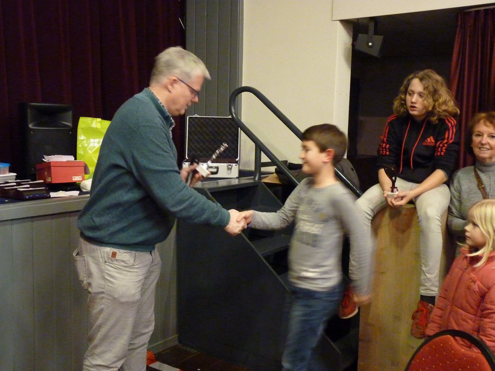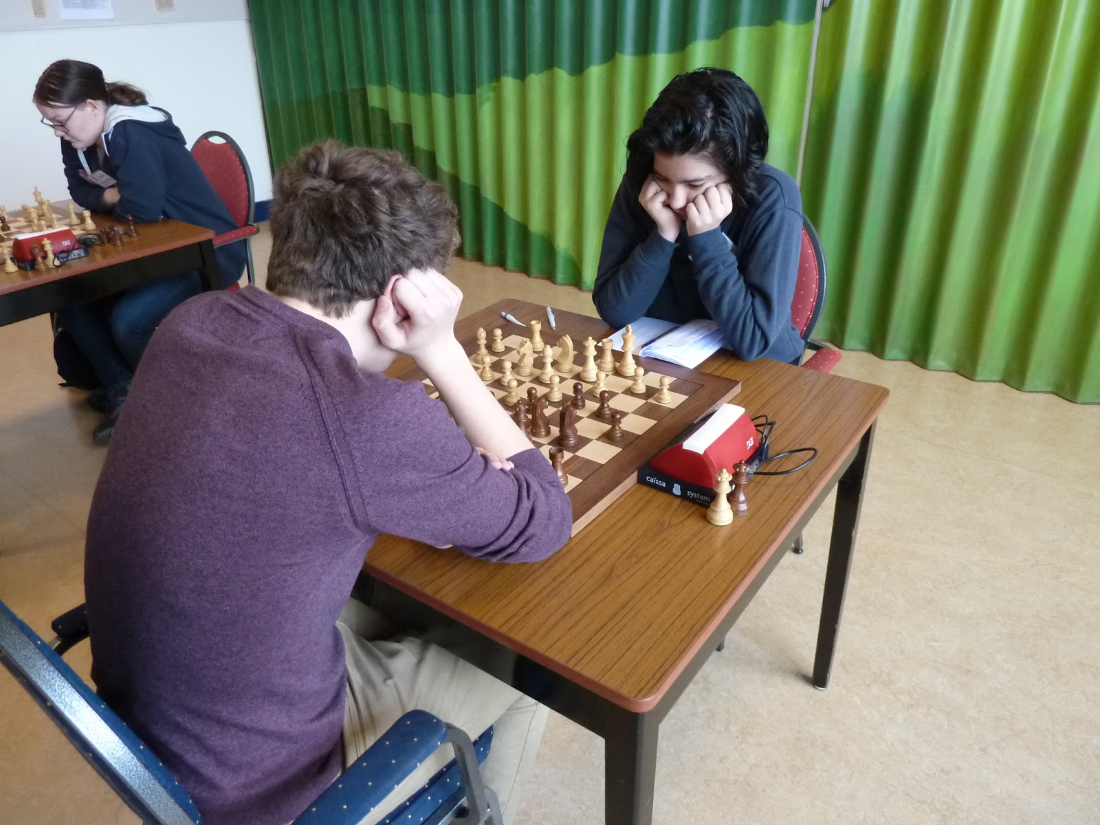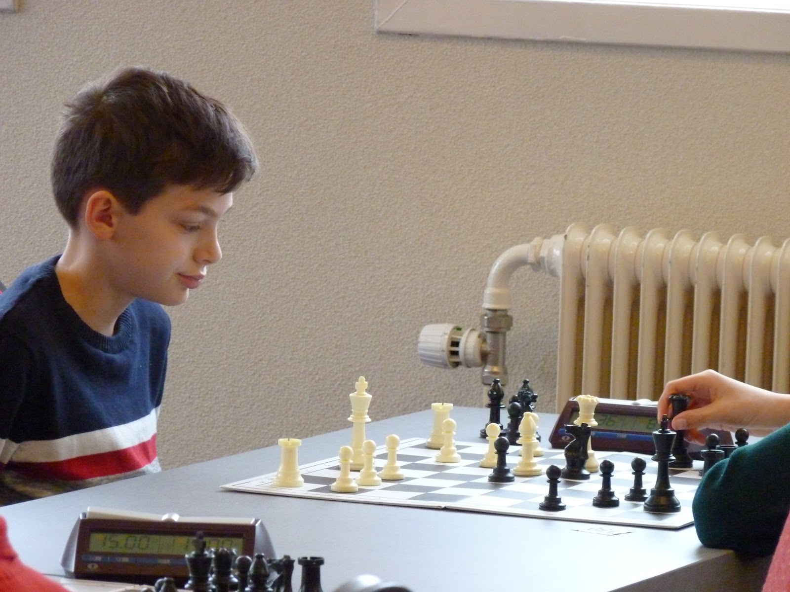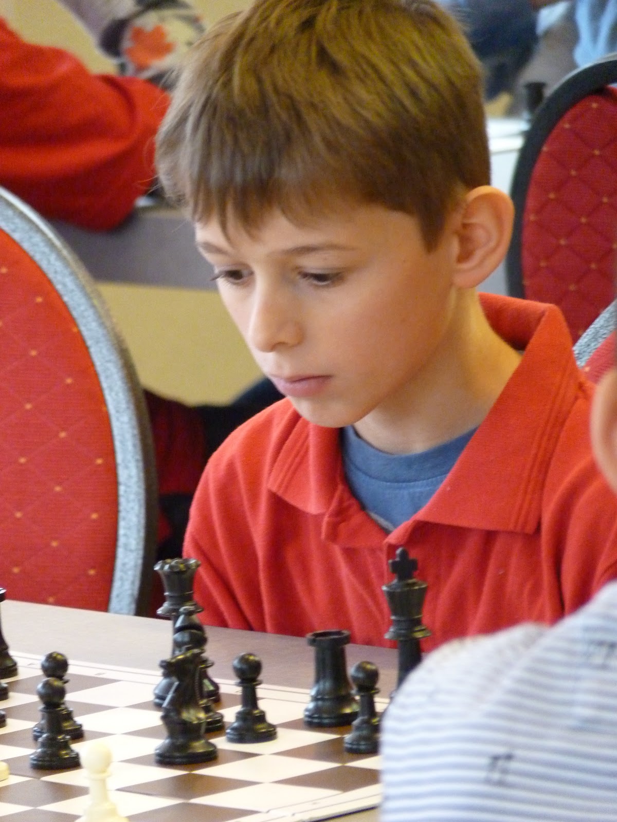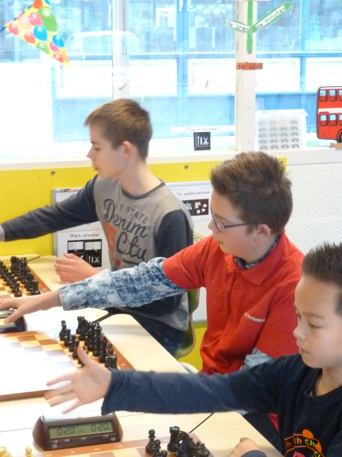 De A- en B-groep zaten in een aparte zaal wat heel goed is voor de rust. De C- en D-groep zaten in de grote zaal. Voor onze jongste deelnemer, Giovanni, bleek dit een lastige omstandigheid. Hij is gevoelig voor dingen die om hem heen gebeuren en het lukte hem in enkele partijen niet om zich daar voor af te sluiten. Zo miste hij in de eerste partij dat hij zijn tegenstander net schaak had gezet op het moment dat deze besloot om Giovanni schaak te zetten. Het was een briljante zet, want daardoor won hij de dame van Giovanni die net aan het winnen was. Giovanni heeft veel talent, heel veel talent. Hij ziet dingen die anderen nog lang niet zien. Zeker als de focus er is speelt hij als de beste. Vandaag lukte dat vanwege eerder genoemde reden en een lichte verkoudheid niet. In de laatste ronde was het op en verloor Giovanni, waardoor hij slechts vierde werd en geen derde. Hij heeft wel heel veel geleerd vandaag!